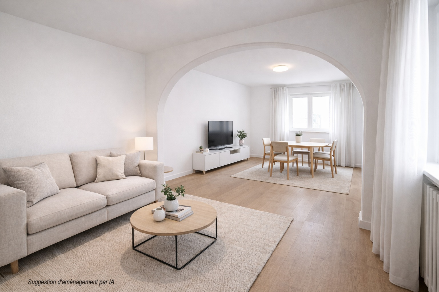 Un hall d'entrée desservant une cuisine, une salle d'eau et un salon-séjour.