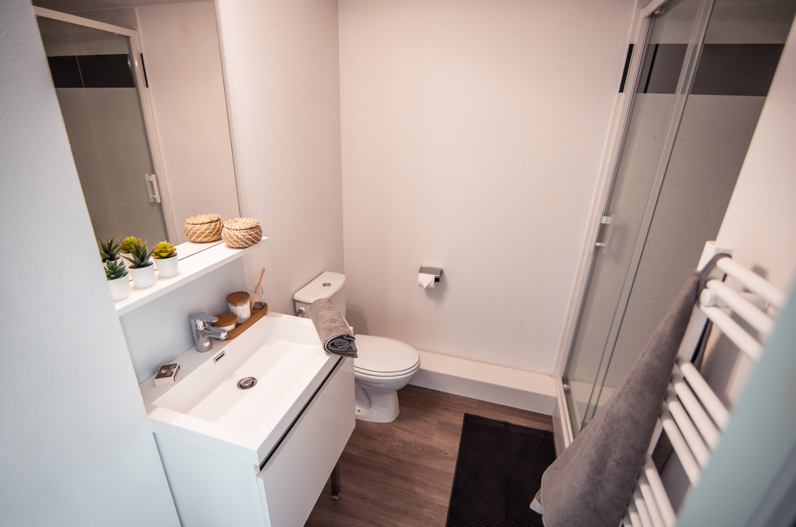 - Services de la résidence : régisseur sur place, digicode, vidéosurveillance, salle de fitness, espace coworking / espace détente, laverie, internet, service ménage, parking sous-sol fermé, local à vélos.