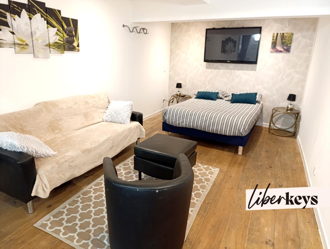 - Salon/Cuisine et un coin nuit avec un lit 2 personnes, une salle de bain, WC