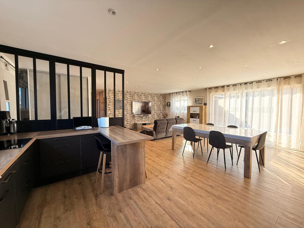 BAYEUX : proche toutes commodités, maison contemporaine de plain-pied et sous garantie décennale comprenant une grande pièce de vie traversante de 45m² donnant sur une terrasse ensoleillée avec piscine chauffée, 4 chambres dont une avec salle d'eau privative, une salle de bains.
