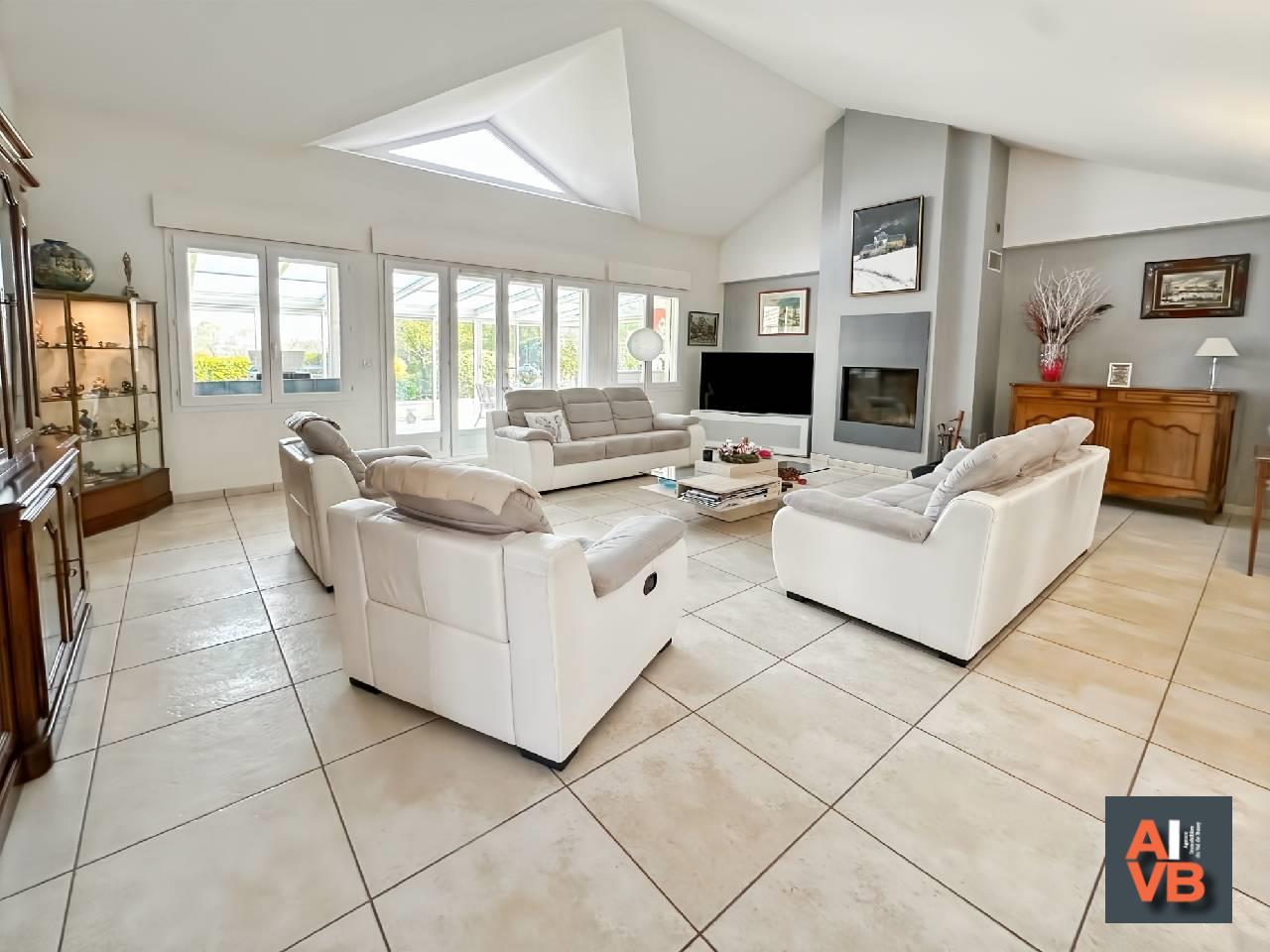 Développant 230m² habitables, cette villa de standing s'ouvre sur un séjour cathédrale, baigné de lumière naturelle, offrant une atmosphère à la fois chaleureuse et contemporaine, sublimée par une cheminée.