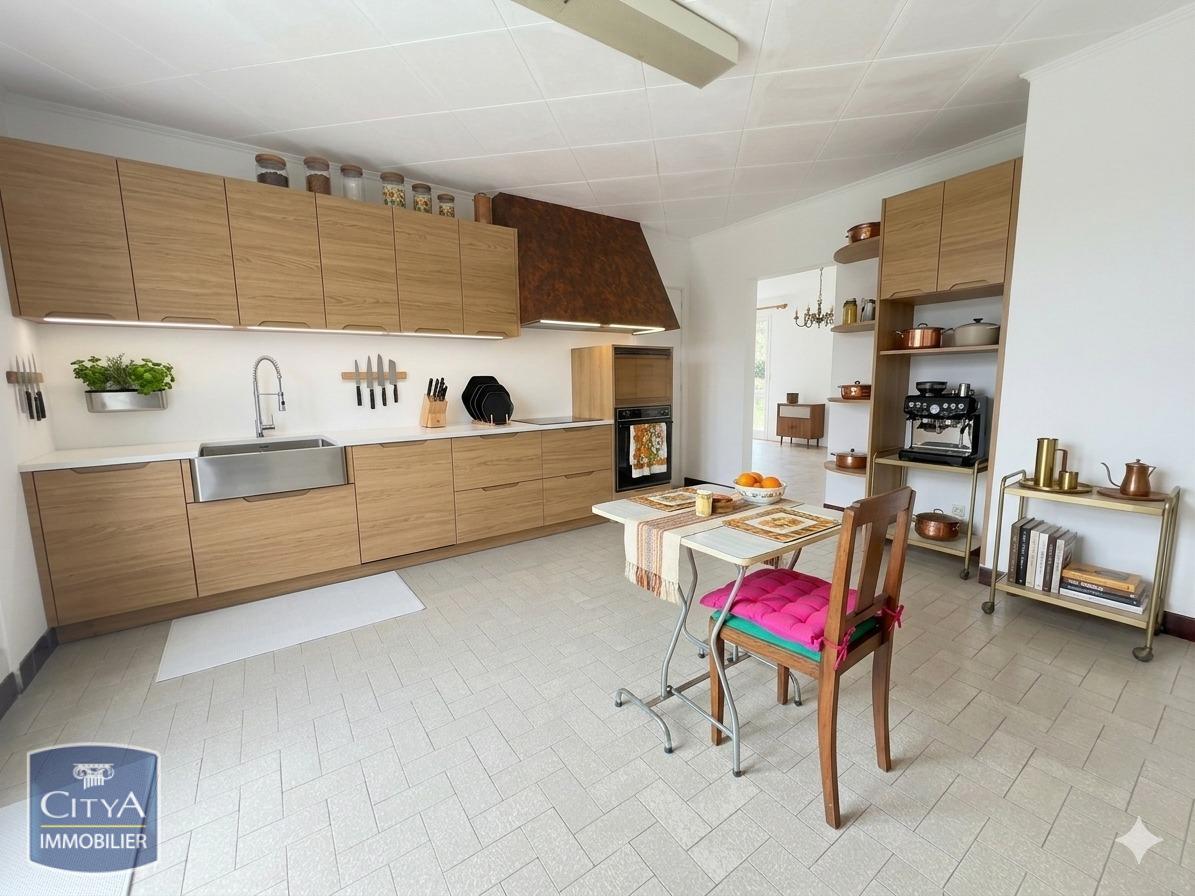 Dès l'entrée, vous serez accueilli par un couloir qui mène à une pièce de vie spacieuse de 26,71 m², parfaite pour des moments de convivialité en famille ou entre amis. La cuisine de 16,46 m², bien que nécessitant quelques travaux de rénovation, offre un potentiel incroyable pour créer un espace culinaire à votre image. La maison dispose de quatre chambres confortables, dont deux avec portes-fenêtres, permettant un accès direct à l'extérieur et inondant les pièces de lumière naturelle.