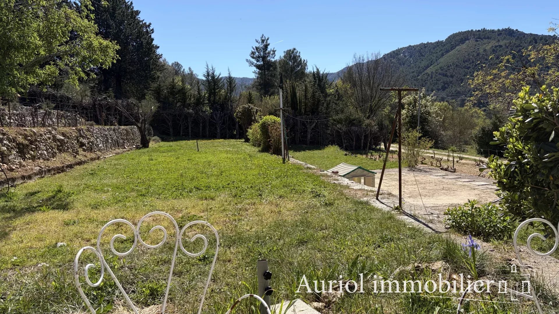 Le jardin de 2 270 m² qui comprend de larges restanques (autrefois un potager), quelques vignes et quelques fruitiers ...