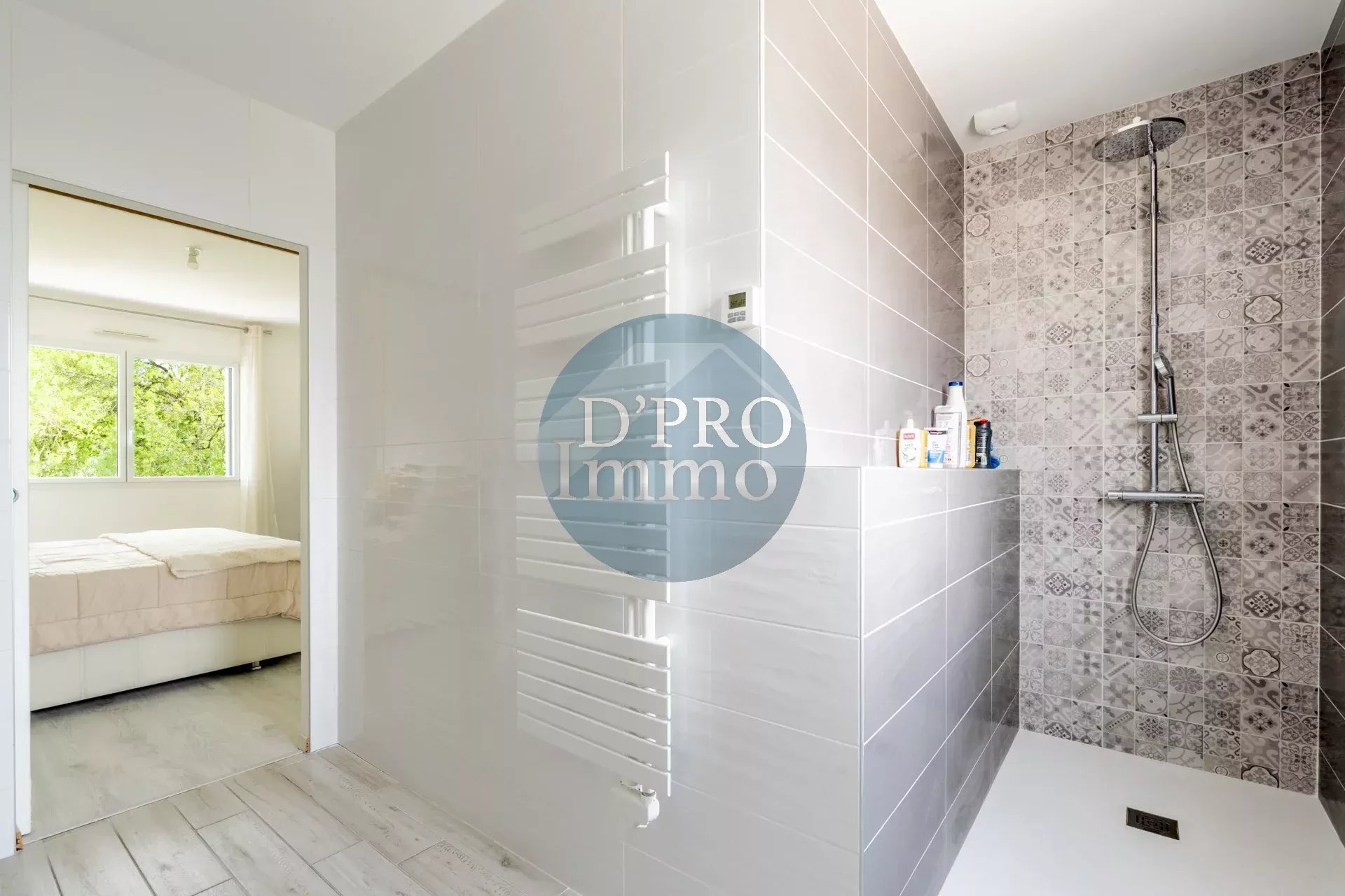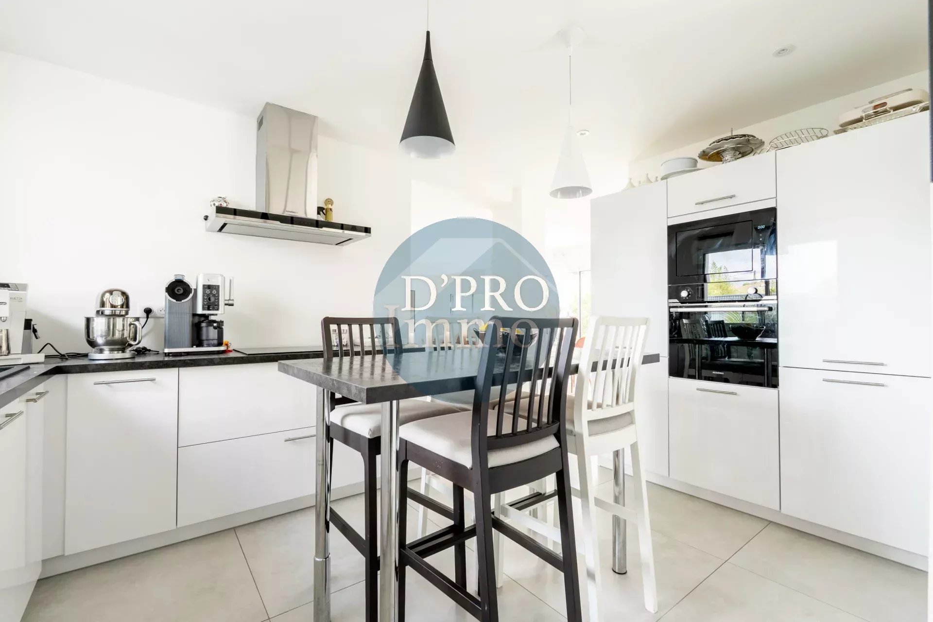 Dès l’entrée, vous serez séduits par les volumes généreux et la luminosité de la pièce de vie, proposant un espace convivial avec cuisine ouverte aménagée et équipée, idéal pour recevoir.