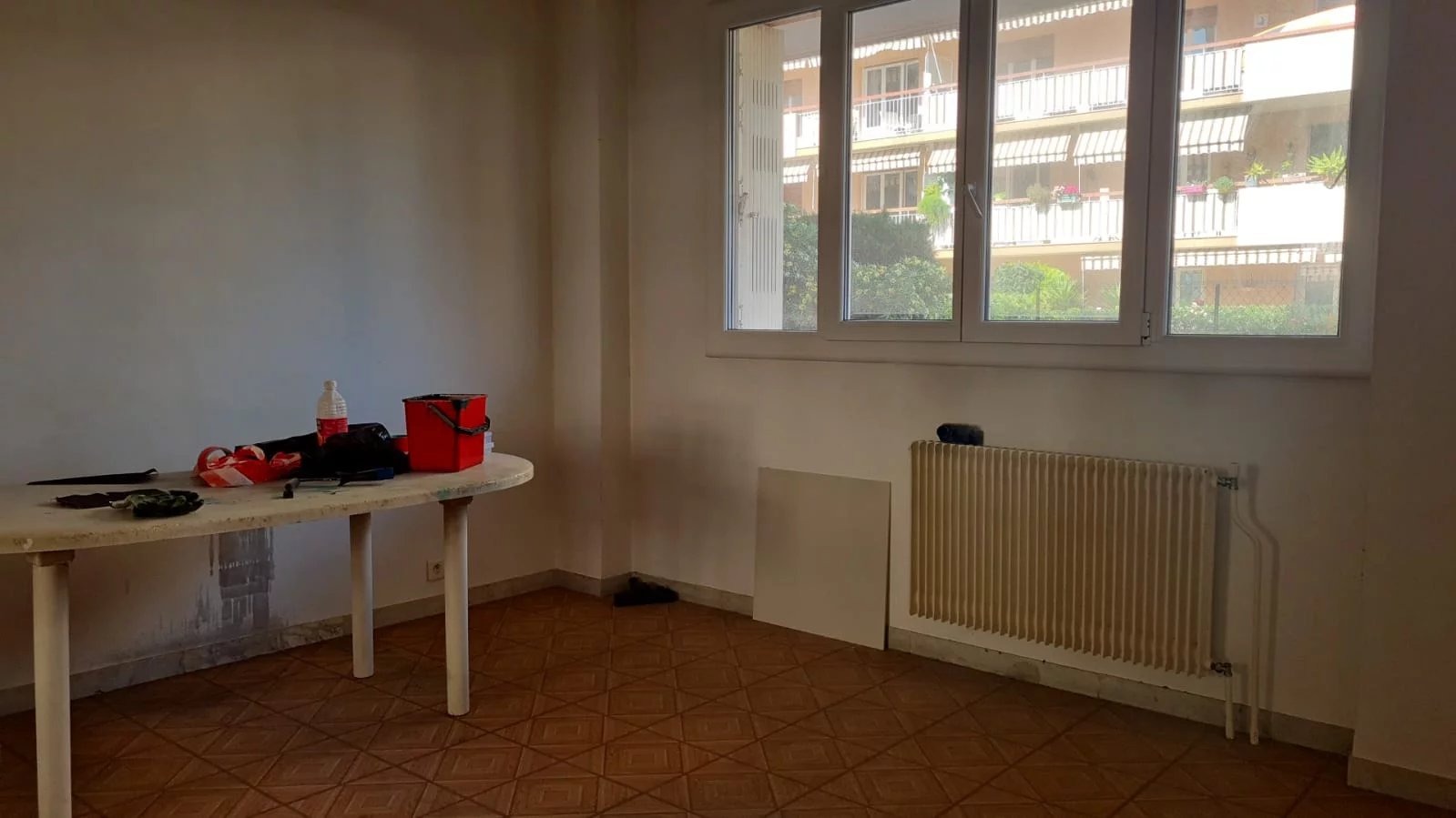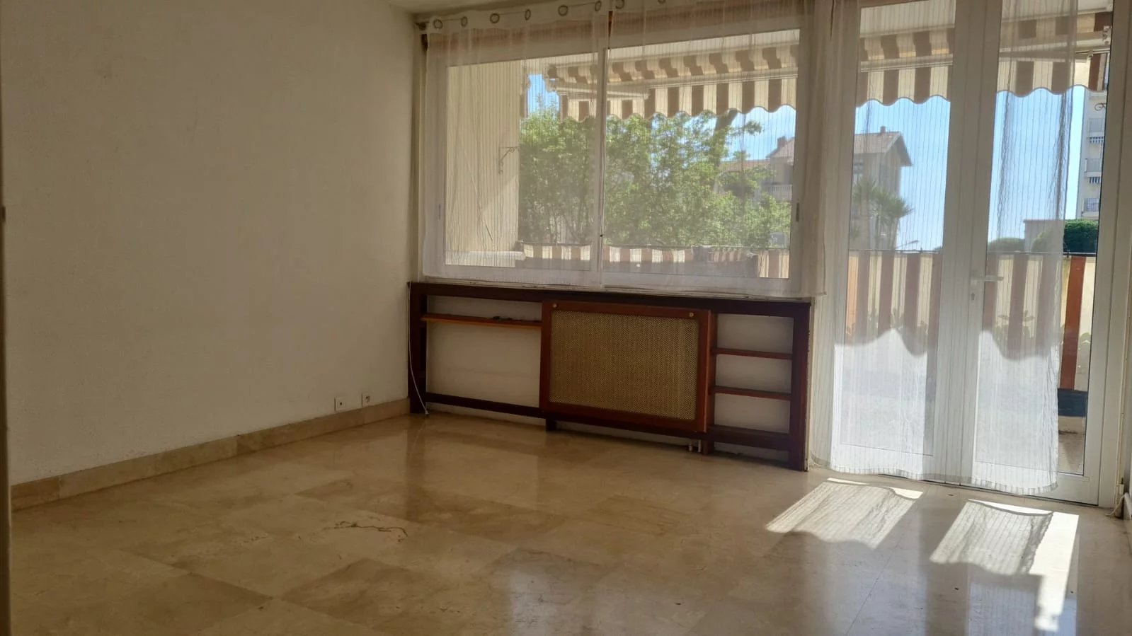 Dans RES. SECURISEE EN FRONT DE MER, 2 PIECES de 50m² environ à rafraîchir, en rez-de-chaussée surelevé, TERRASSE, CALME, CAVE, PARKING COLLECTIF.