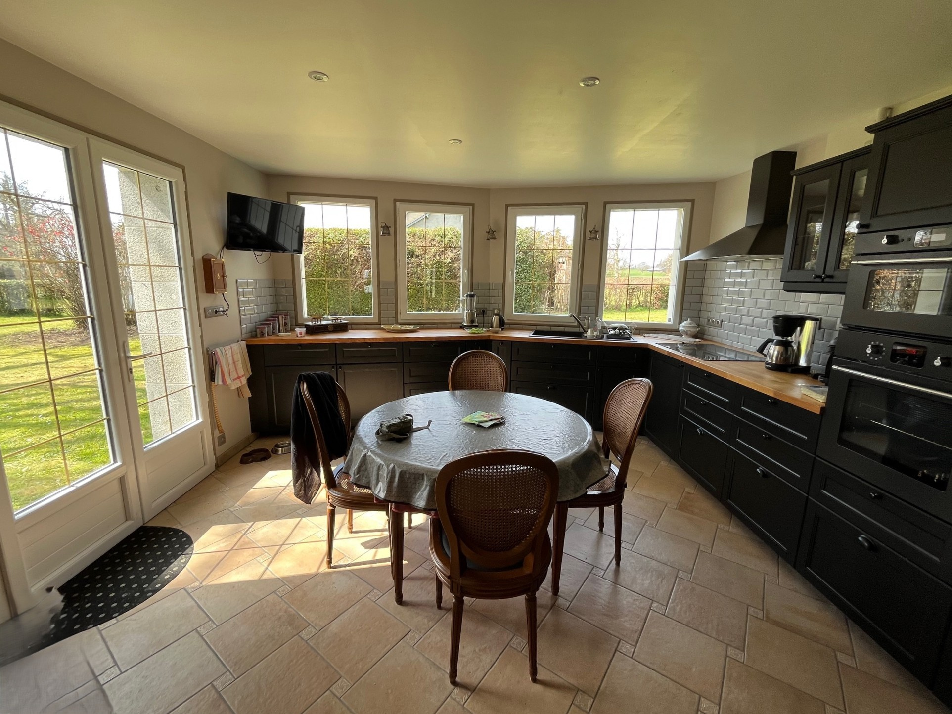 o Cuisine indépendante équipée, très lumineuse et ouverte sur le jardin.