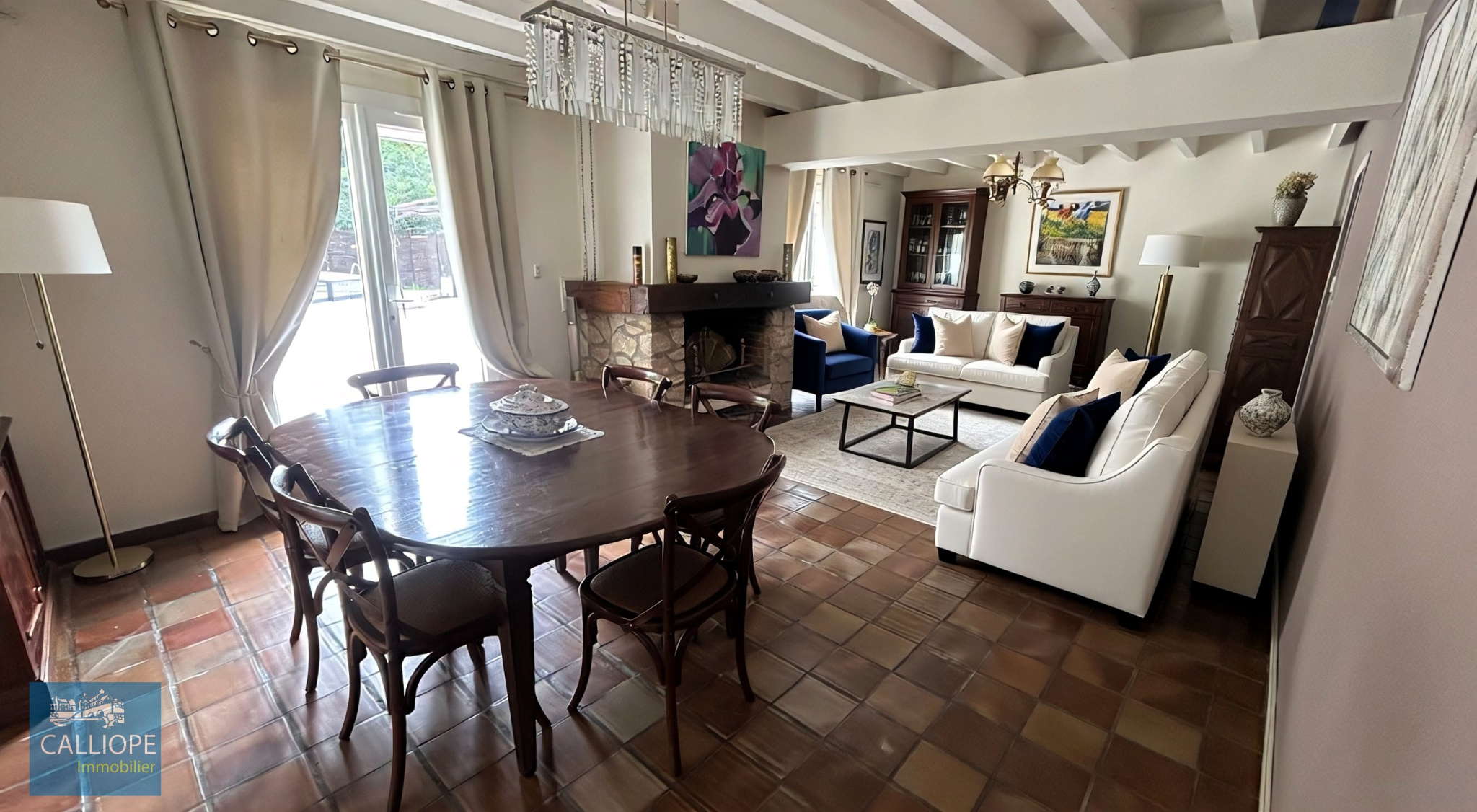 - 5 chambres dont 4 avec points d'eau.- séjour lumineux avec cheminée donnant sur une agréable véranda- Belle cuisine indépendante totalement équipée et grand cellier
