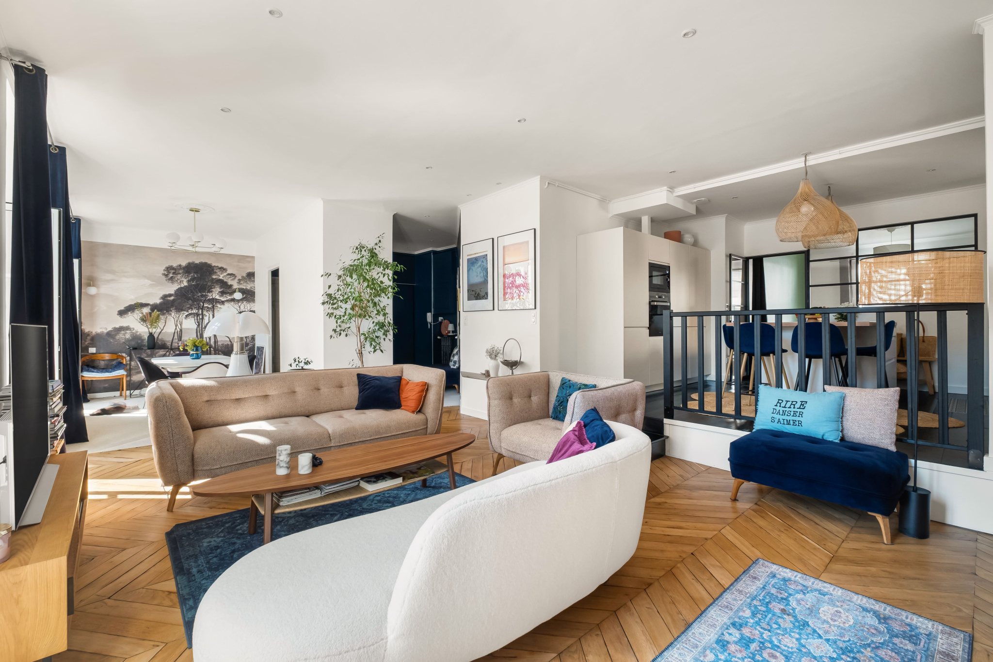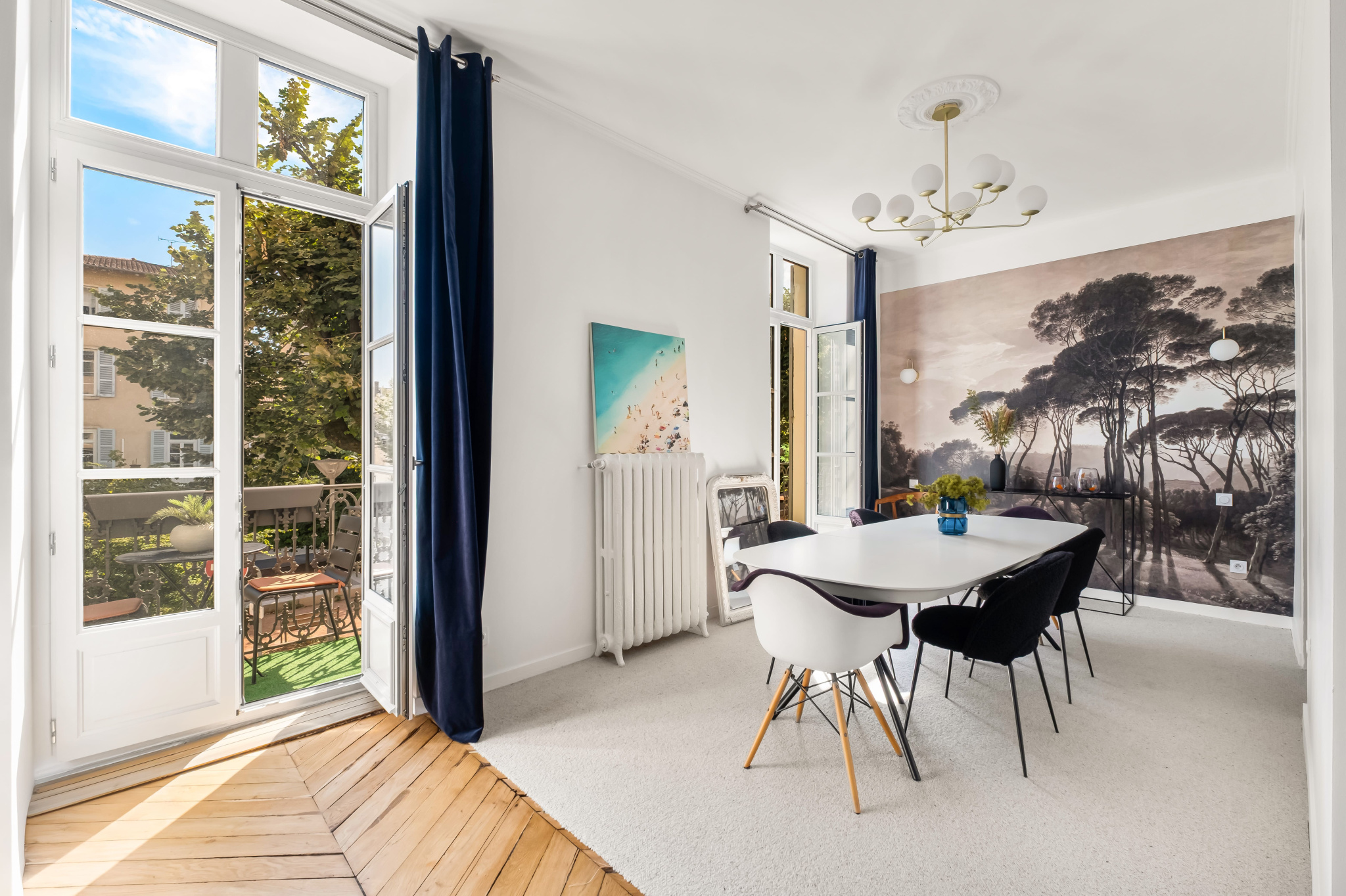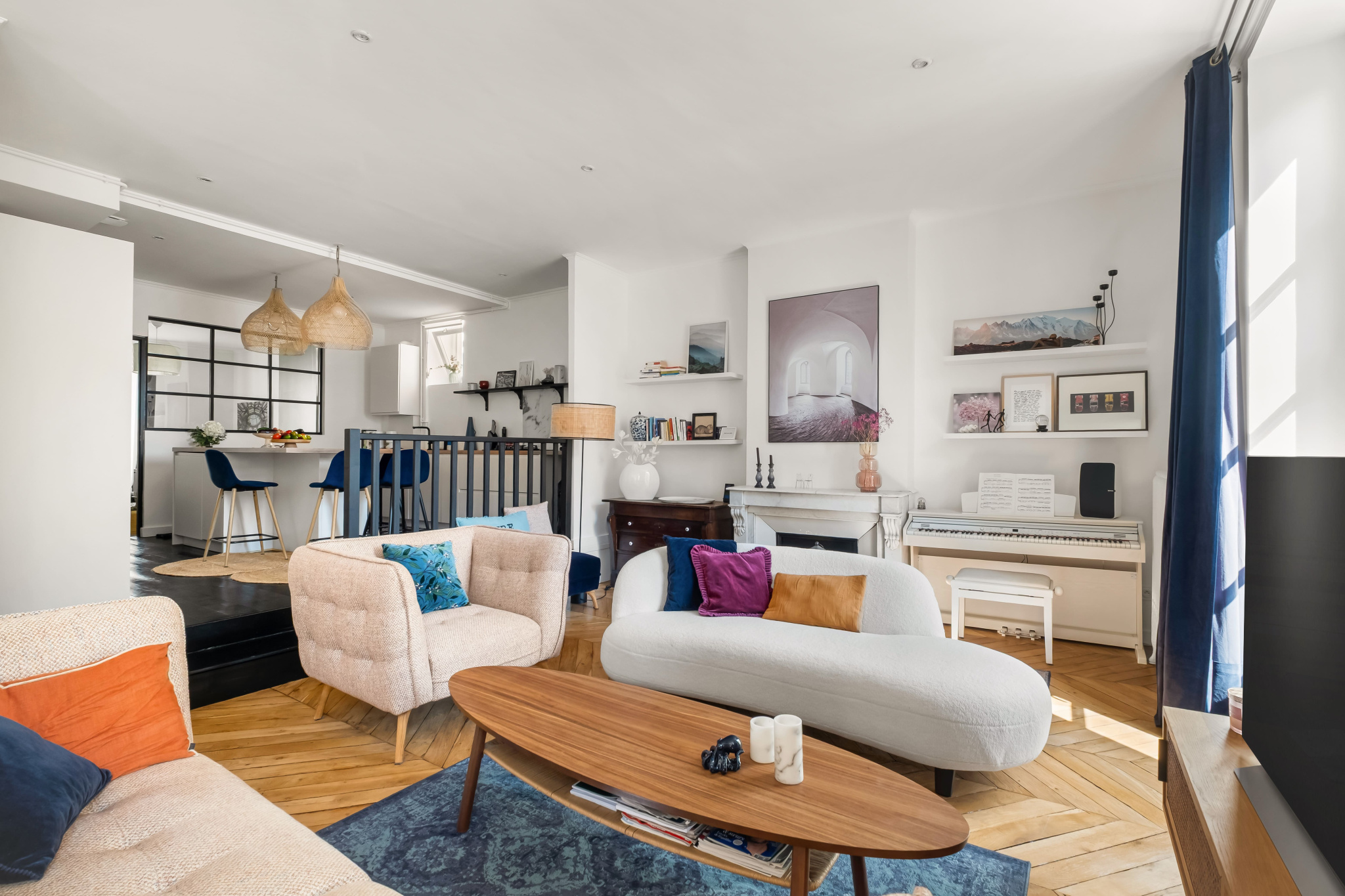 Le charme est au rendez-vous : moulures, cheminées, parquet ancien et belle hauteur sous plafond créent une atmosphère élégante et conviviale.