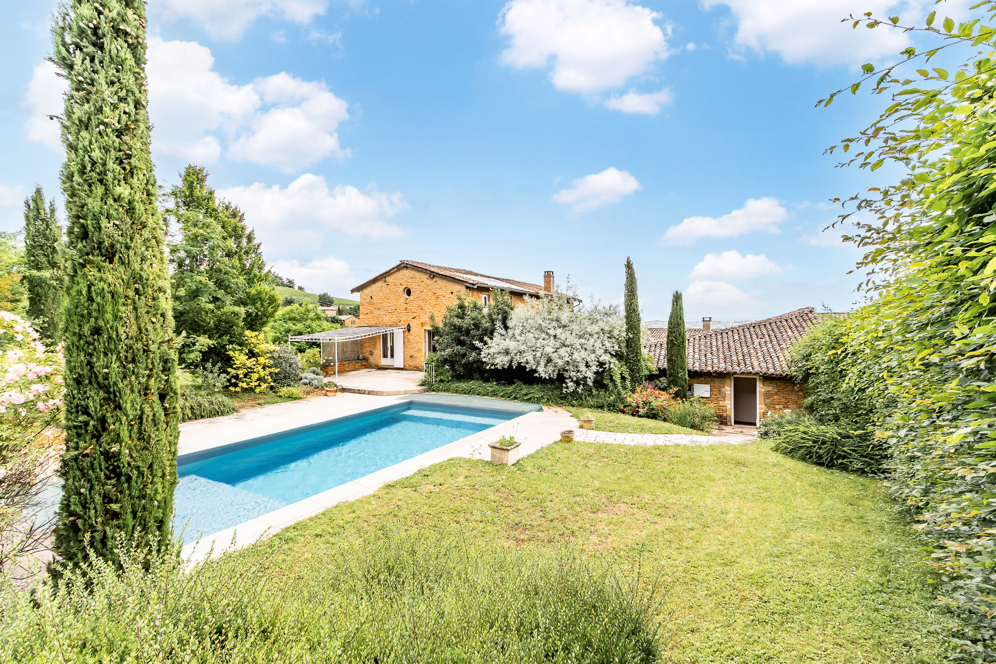 À seulement 15 minutes à l'ouest de Villefranche, au coeur du Beaujolais, cette propriété confidentielle en pierres dorées dévoile un art de vivre rare, entre élégance, authenticité et confort contemporain.