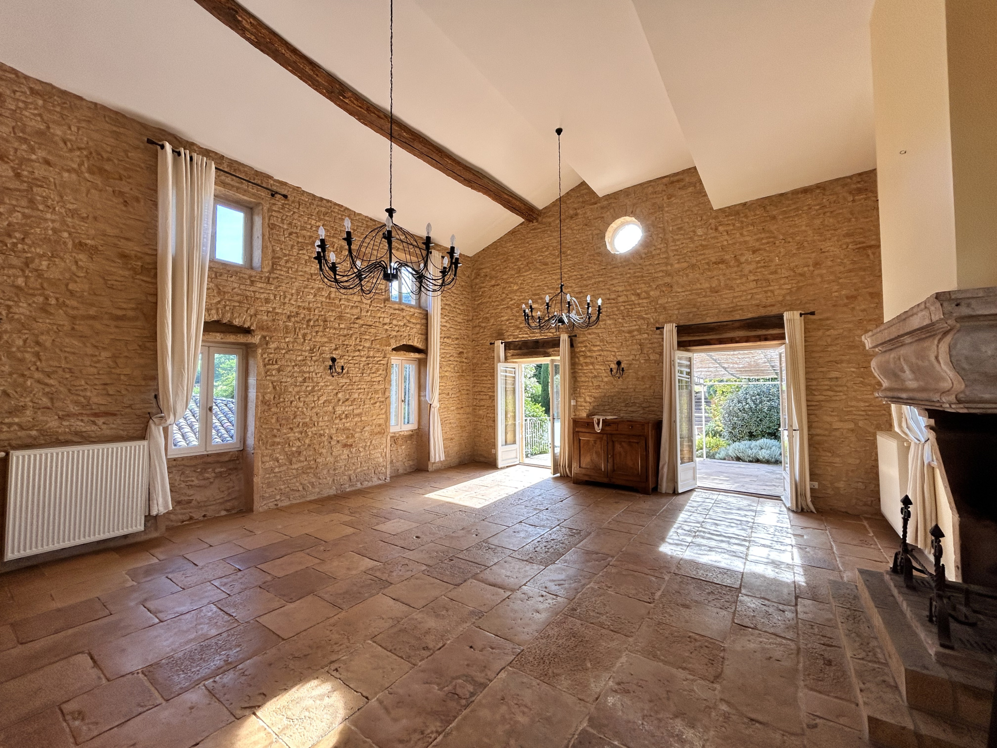 La maison principale, d'environ 260 m2, séduit par la qualité de sa rénovation et l'harmonie subtile entre cachet de l'ancien et lignes contemporaines. Le salon déplafonné, avec un sol authentique en calades et sa superbe cheminée en pierre est baigné de lumière et s'ouvre sur une grande terrasse plein sud-ouest avec accès à la piscine, offrant une vue imprenable sur la campagne environnante. Vous aurez plaisir à passer du temps dans la cuisine haut de gamme très bien équipée avec un espace salle à manger profitant d'une superbe vue sur la chaine des Alpes. Au rez de chaussé vous découvrirez un second salon beaucoup plus intimiste avec de superbes voutes en pierres, véritable pièce signature de la maison.