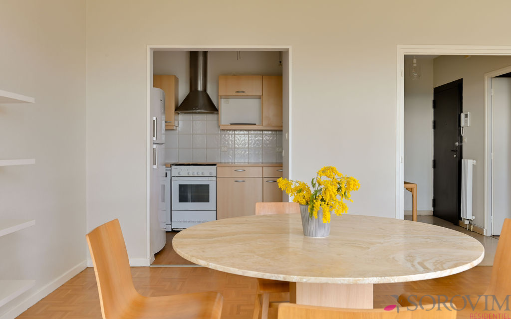 Lyon 5ème / Sainte-Foy, proximité commerces et village. Au calme et dans un cadre verdoyant, dans une résidence de standing édifiée par Pitance, beaux volumes pour ce 2 pièces de 72 m2. Il se compose d'une entrée avec un dressing aménagé sur-mesure, un vaste séjour de 33 m2 en parquet avec de grandes baies vitrées ouvrant sur un balcon exploitable de 14 m2. Une cuisine entièrement meublée et équipée. La partie nuit dessert une chambre avec rangement, une salle de bains spacieuse et un toilette séparé. Une cave et un local à vélos. Coup de coeur pour cet appartement bénéficiant d'une vue dégagée et niché au sein d'une copropriété cossue avec un beau parc arboré. Infos Loi Alur : 28 lots de copropriété, quote part charges annuelles 4 400 EUR, pas de procédure en cours. Angela FALCONNET-VITALI 06.15.75.06.49