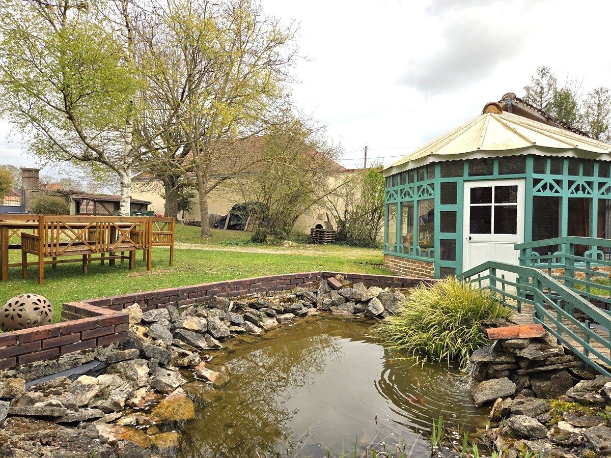 L'espace extérieur, dépaysant, offre un terrain clos et joliement arboré d'environ 1500m2 un double garage, atelier, jardin d'hiver, cabanon de jardin, bassin d'agrément...