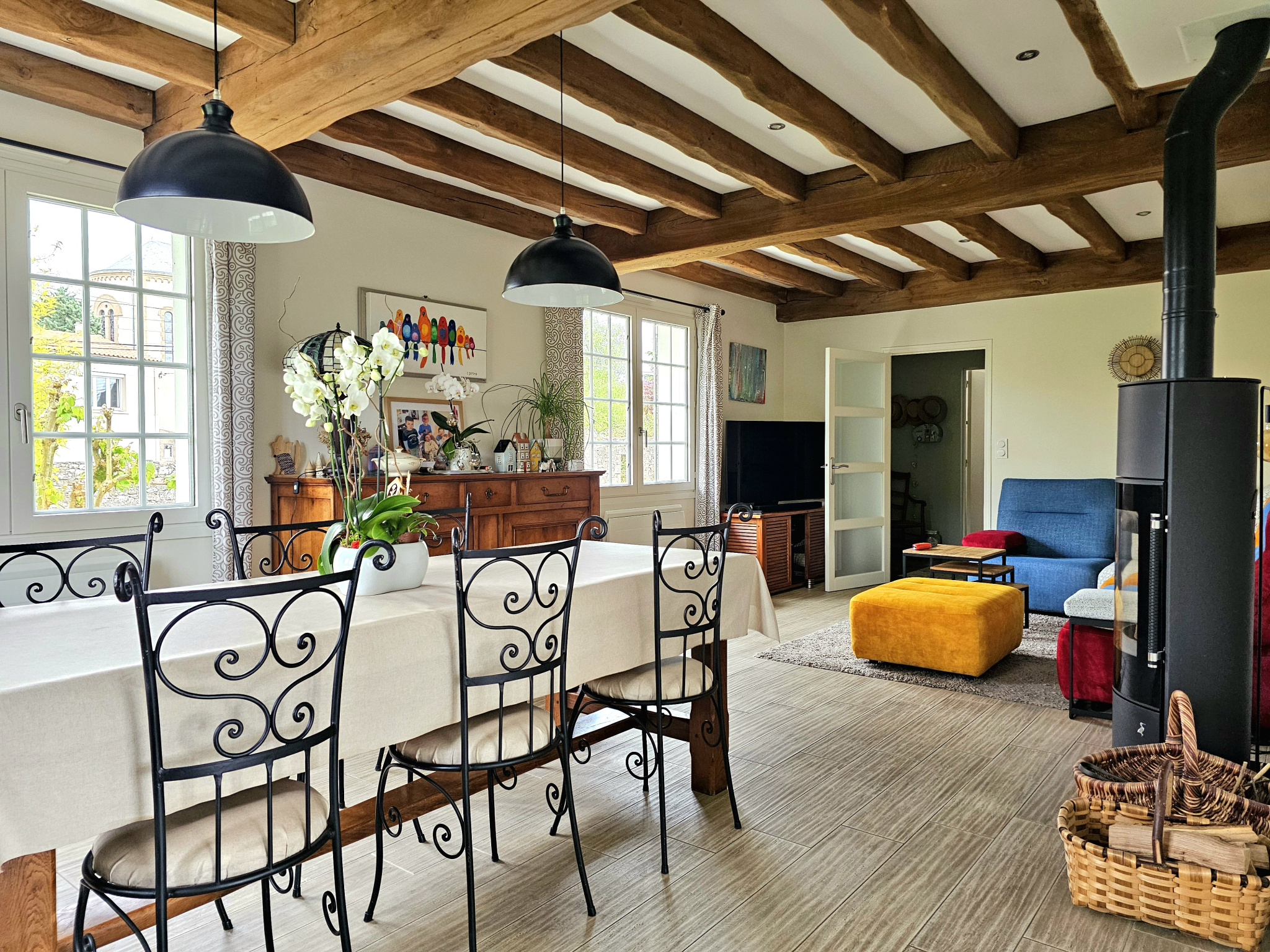 Construite sur un sous-sol total, cette maison offre un garage spacieux pour deux voitures, accessible par deux portails électriques. L'ensemble de la partie habitable se situe de plain-pied, facilitant la circulation et le confort au quotidien. Un vaste hall d'entrée dessert un séjour double baigné de lumière, idéal pour recevoir famille et amis. La grande cuisine équipée s'ouvre sur une terrasse exposée sud-ouest, parfaite pour profiter des beaux jours.