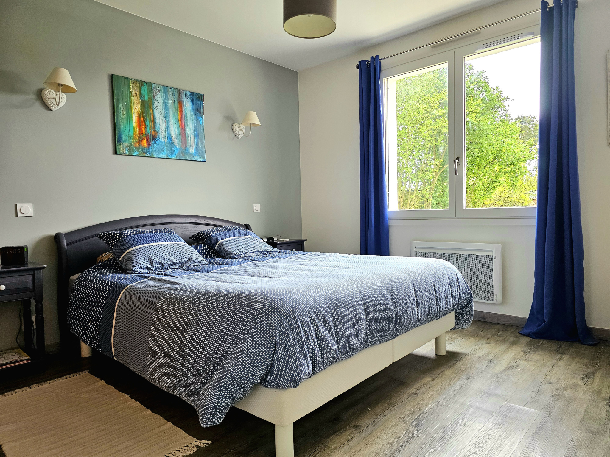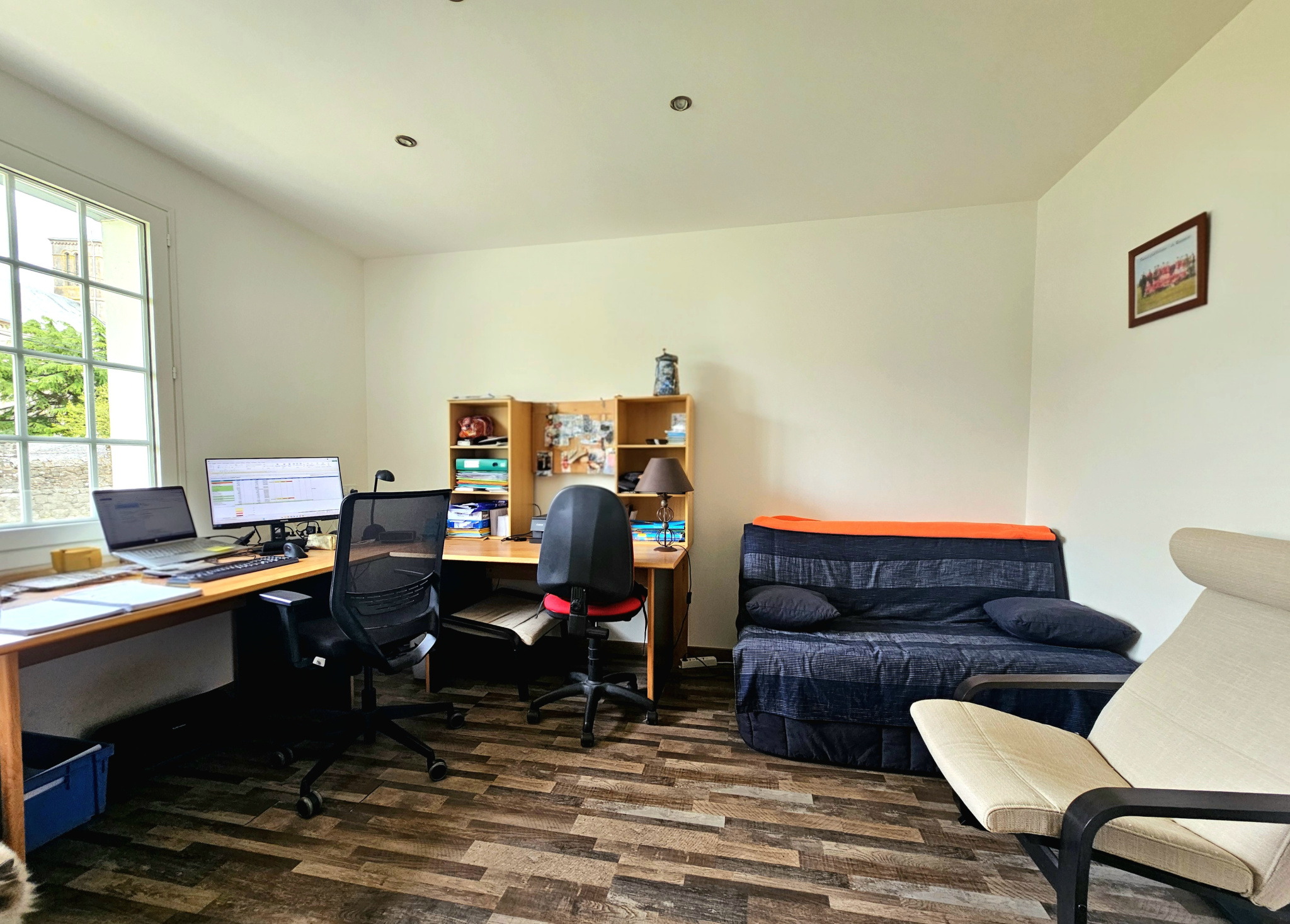 Côté nuit, vous trouverez quatre chambres confortables, une salle d'eau moderne et des WC séparés. Le chauffage électrique est complété par des panneaux solaires en autoconsommation, garantissant des économies d'énergie. Un puits, relié à la maison et couplé au réseau Saur, alimente WC, douche et lave-linge, pour une gestion optimisée de l'eau.
