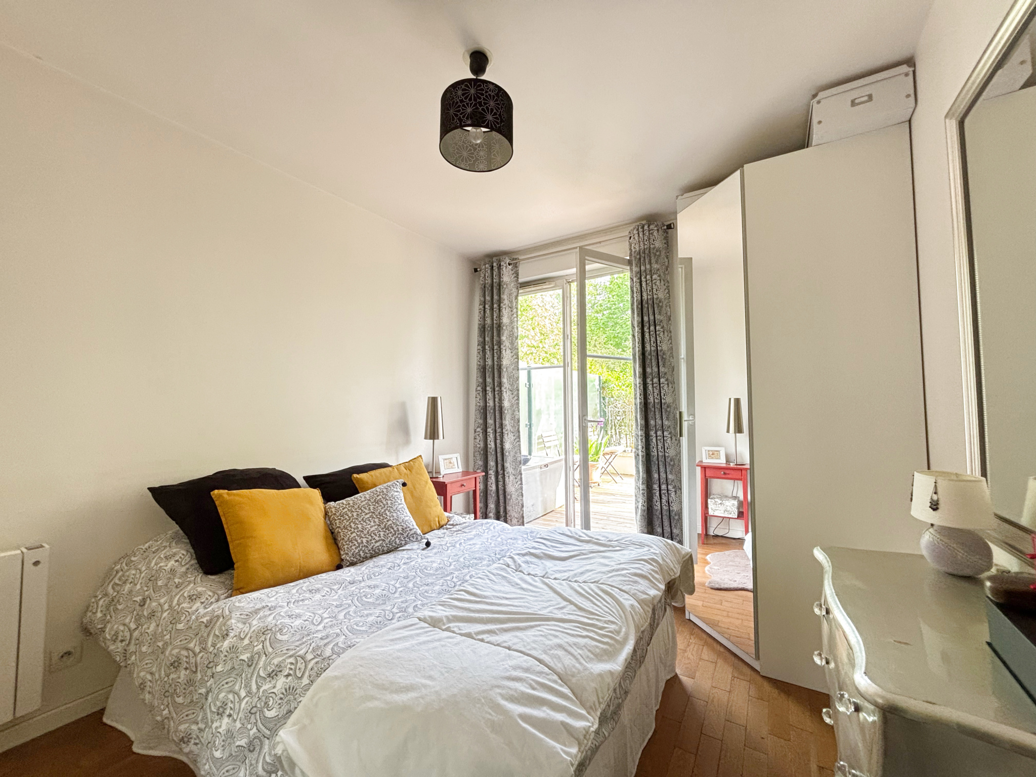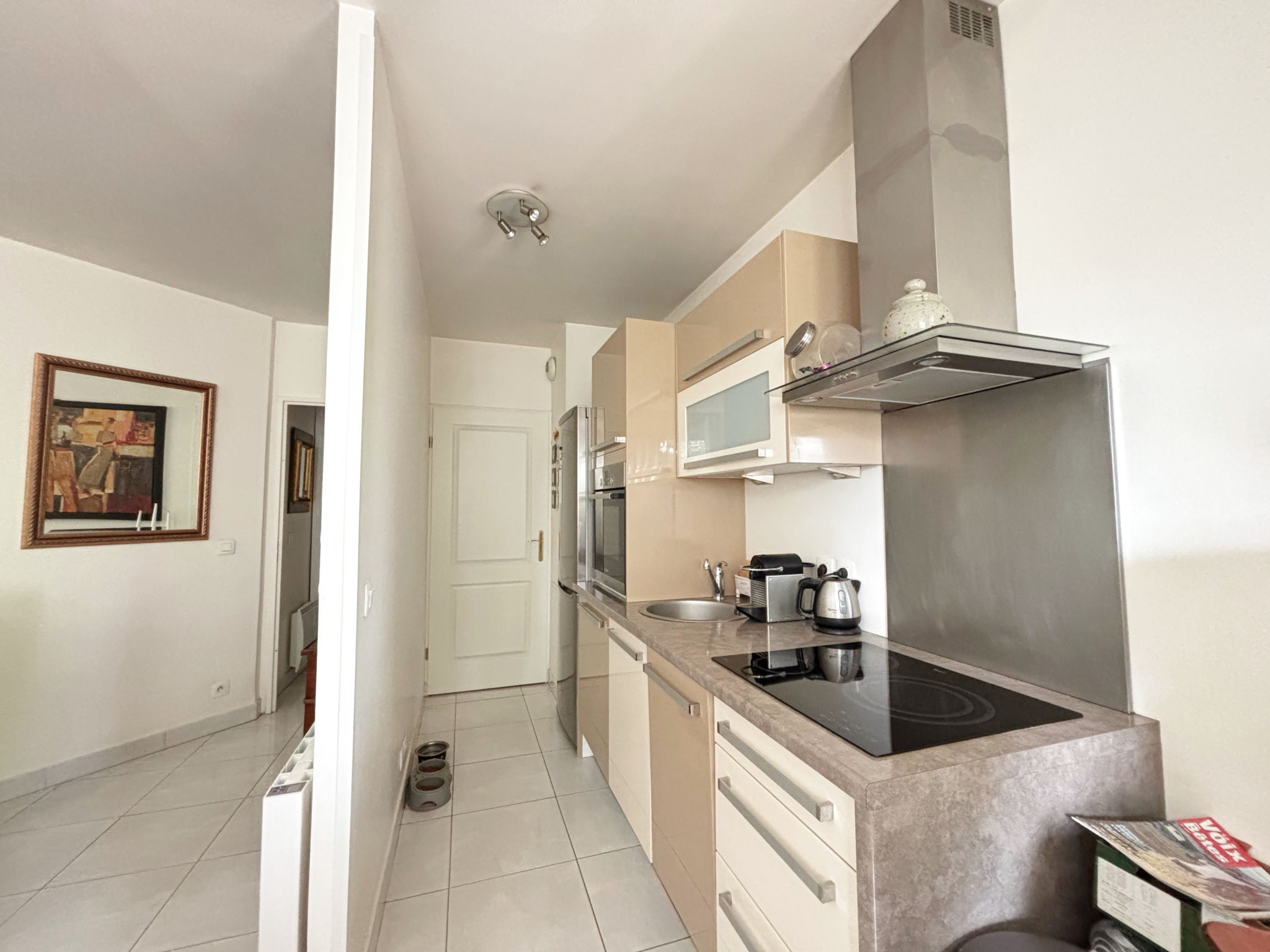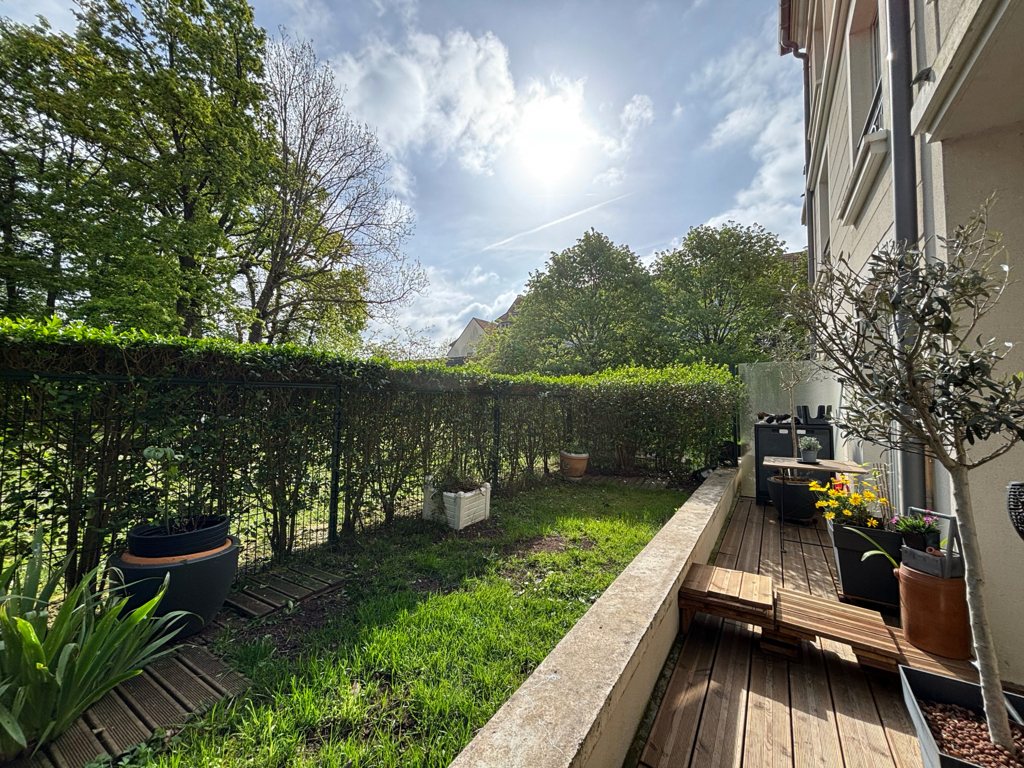 Il se compose d'une entrée avec placard, d'un séjour lumineux ouvrant sur une terrasse et un jardin privatif sans vis-à-vis (32m2 au total), au calme, avec vue sur les espaces verts de la copropriété. La cuisine, aménagée et équipée, peut être entièrement ouverte sur le séjour.
