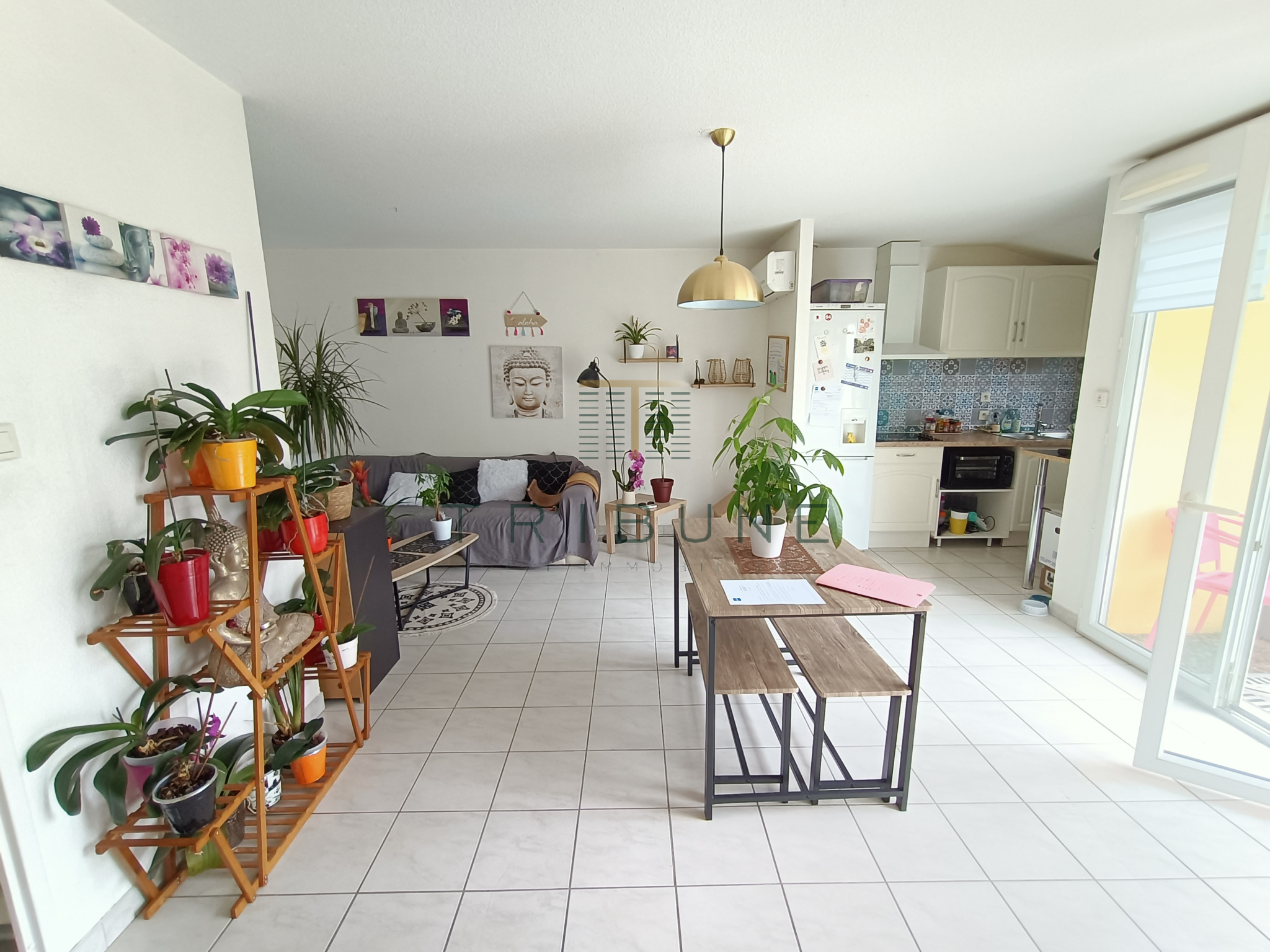 Séjour lumineux avec coin cuisine