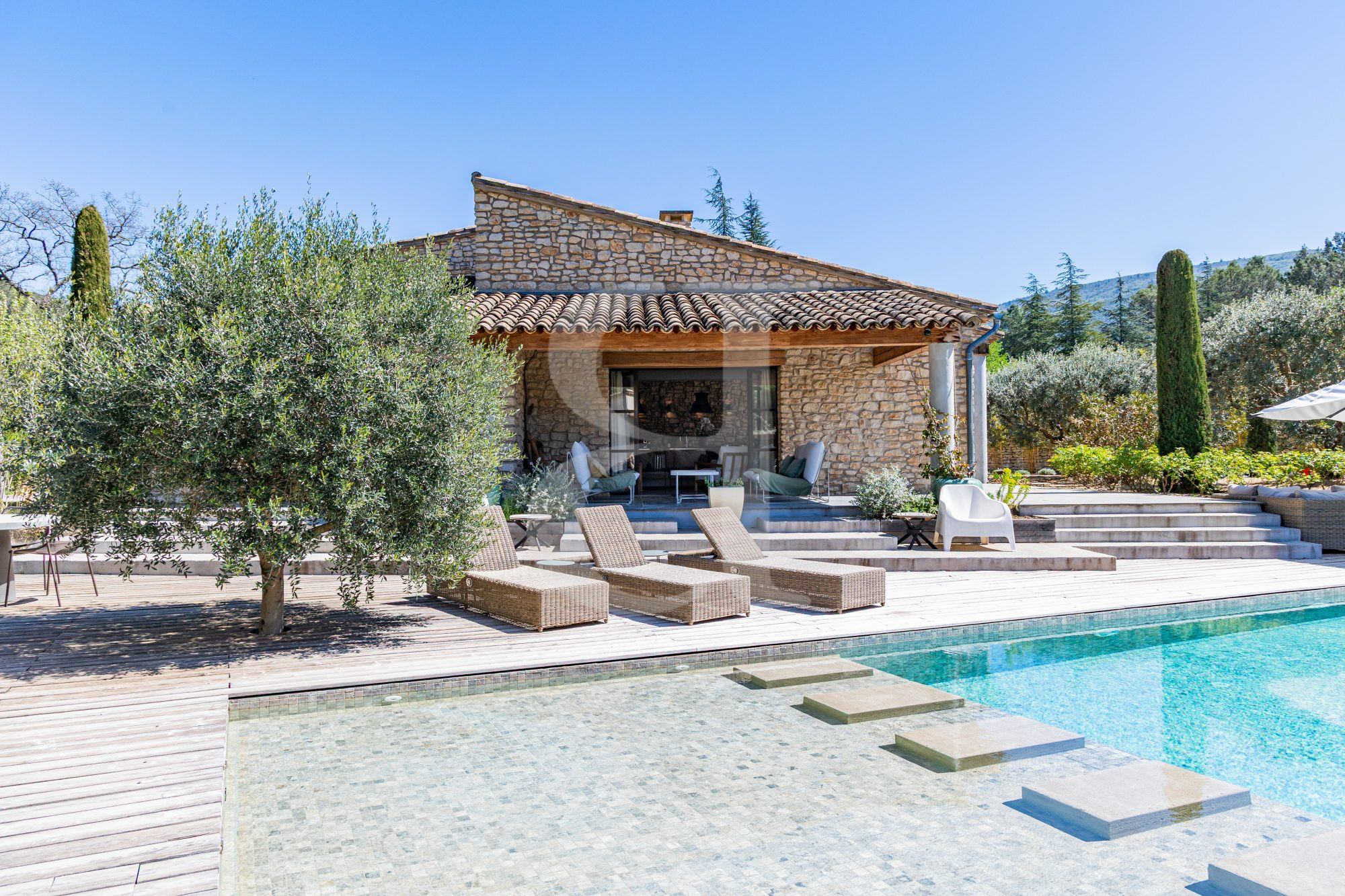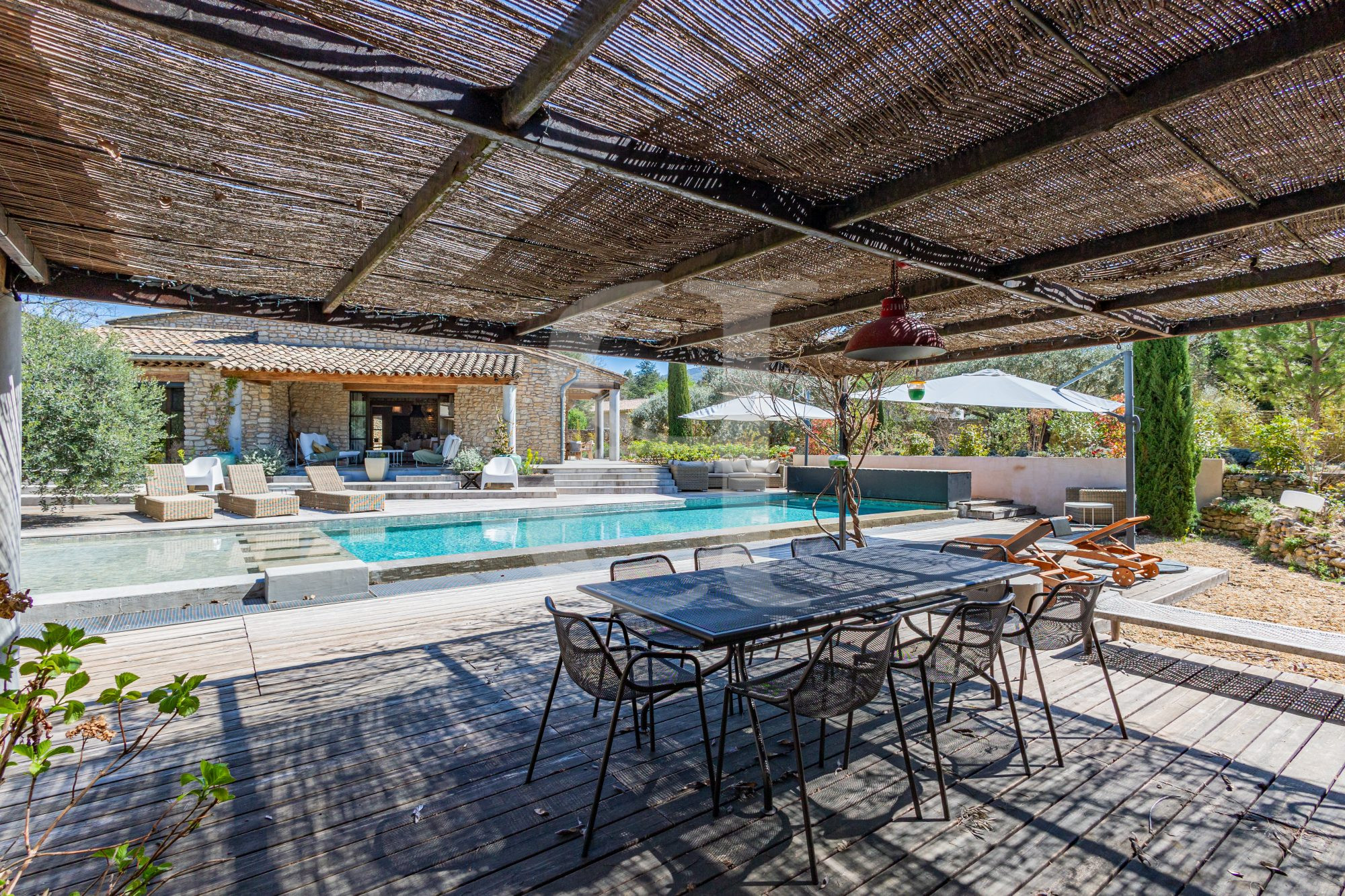 À quelques minutes du village perché de Ménerbes, au coeur du Luberon, cette propriété contemporaine de plain-pied allie avec élégance charme provençal et prestations haut de gamme.