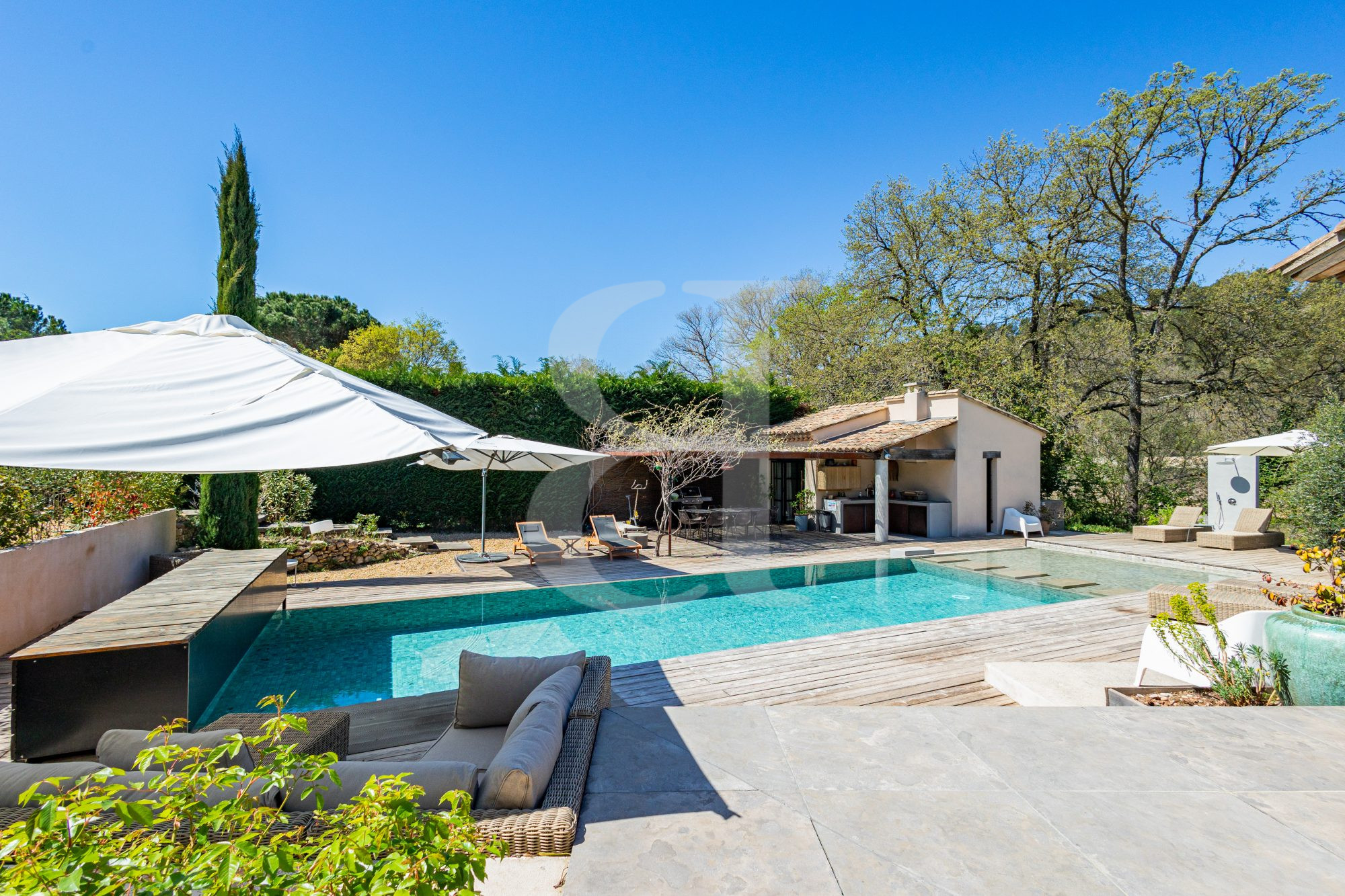 À l'extérieur, le jardin méditerranéen accueille une superbe piscine chauffée à débordement de 15 x 4 m, ainsi que de nombreux espaces de détente. Pool house équipé, cuisine d'été, terrain de pétanque et terrasses ombragées viennent parfaire cet art de vivre en Provence.