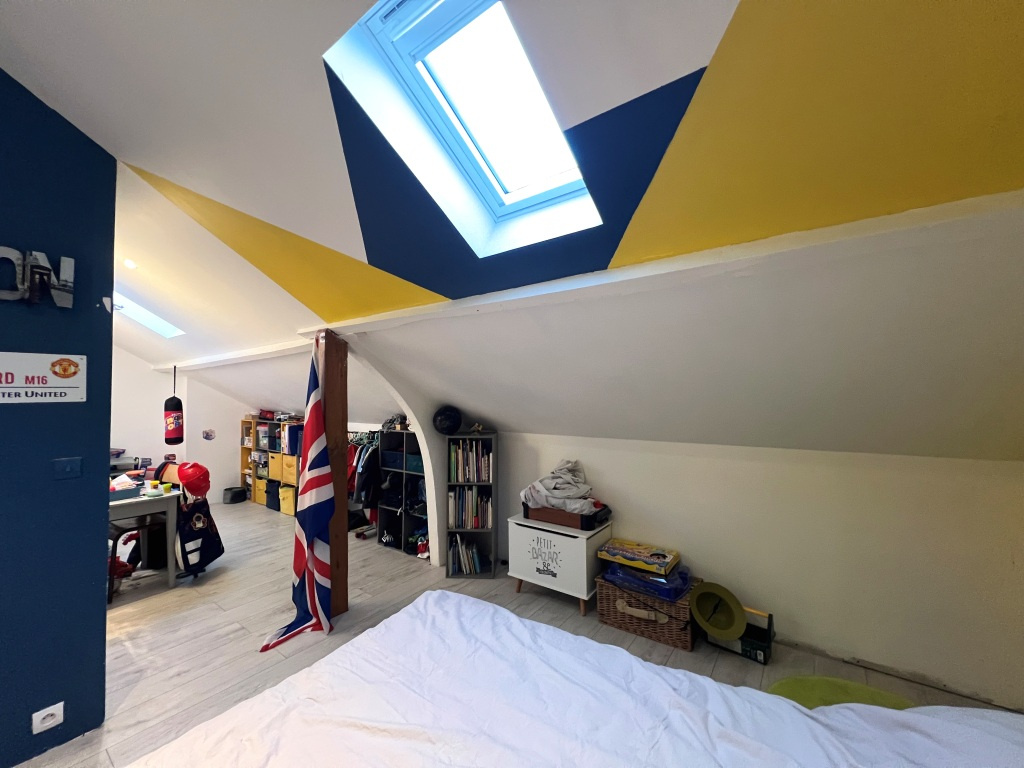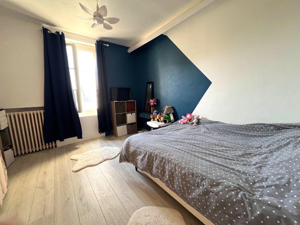 L'étage, totalement rénové, se compose de deux chambres, n dressing (ou bureau) et une salle d'eau avec WC.