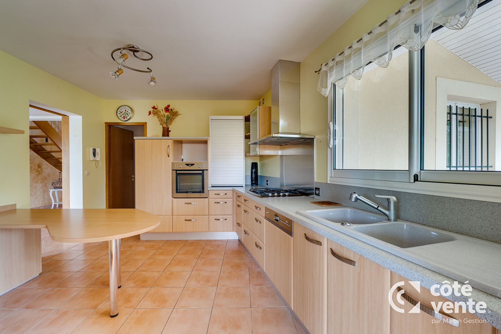La cuisine attenante entièrement équipée est parfaitement fonctionnelle avec son cellier accolé et dans le prolongement une buanderie et un premier garage.
