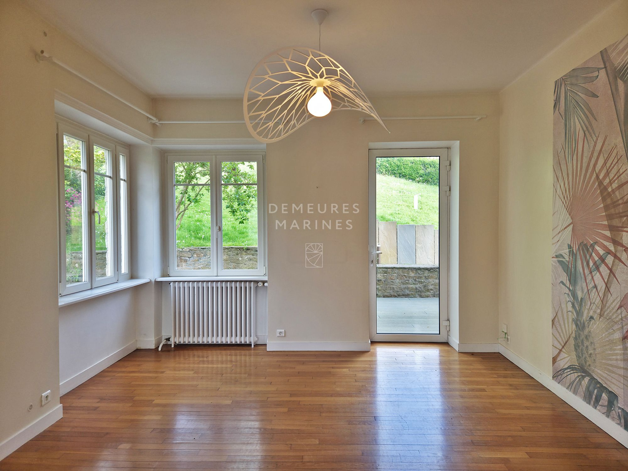 Demeures Marines vous présente « Violette », une élégante maison familiale des années 50, idéalement située à quelques minutes du centre de Quimper, capitale de la Cornouaille. Nichée dans un quartier résidentiel recherché et paisible, cette demeure séduit par ses volumes généreux, sa lumière traversante et son magnifique jardin paysagé.