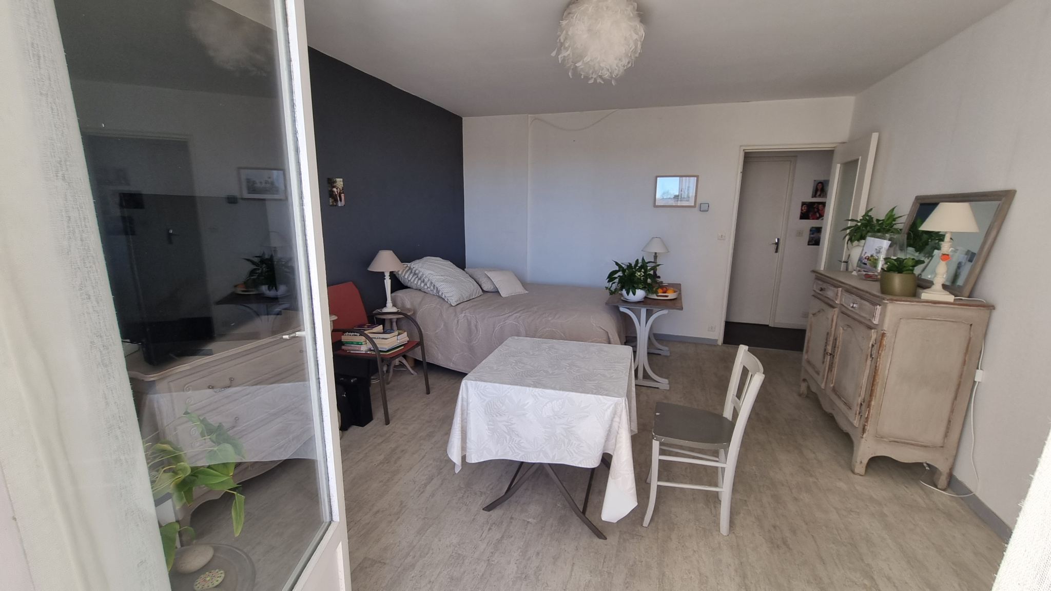 EXCLUSIF !! RARE - Appartement F1 lumineux avec 2 loggias, vue dégagée, place de parking en sous-sol fermé et sécurisé et cave. Parc Gramont - VICHY Idéal investisseur ou 1er achat !! Au 1er étage avec ascenseur, appartement F1 à double exposition comprenant : hall d'entrée avec placard, séjour lumineux de 19 m2 avec grande loggia et vue dégagée, cuisine équipée de 6,50 m2 avec petite loggia, salle de bains avec meuble vasque et emplacement lave linge, WC séparé, dégagement avec placard.