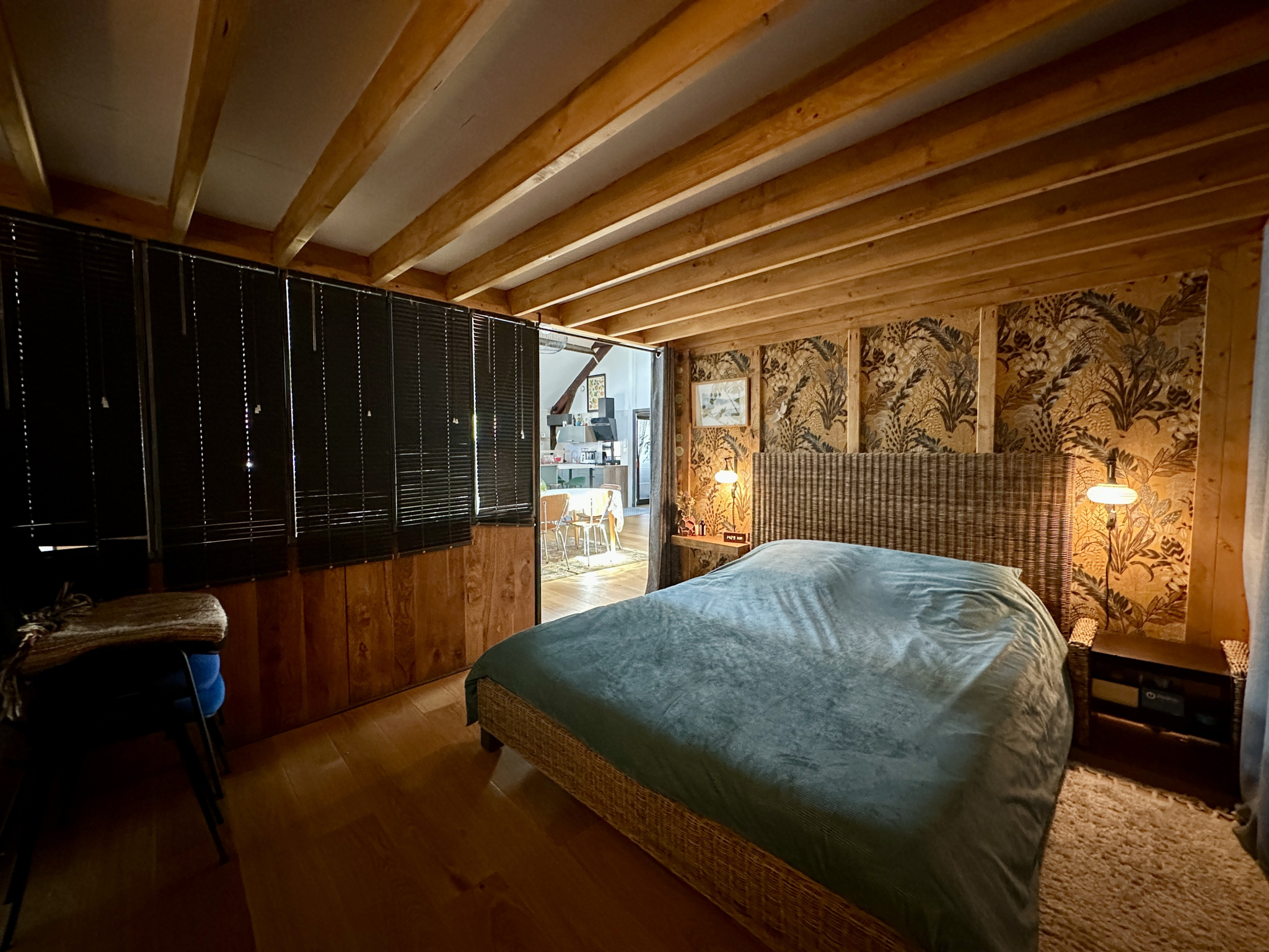 Dès l'entrée, vous serez séduit par une pièce de vie spectaculaire de 89 m2, avec toit cathédrale et charpente apparente, offrant un volume rare et une luminosité remarquable. Cuisine aménagée et équipée ouverte sur l'ensemble.
