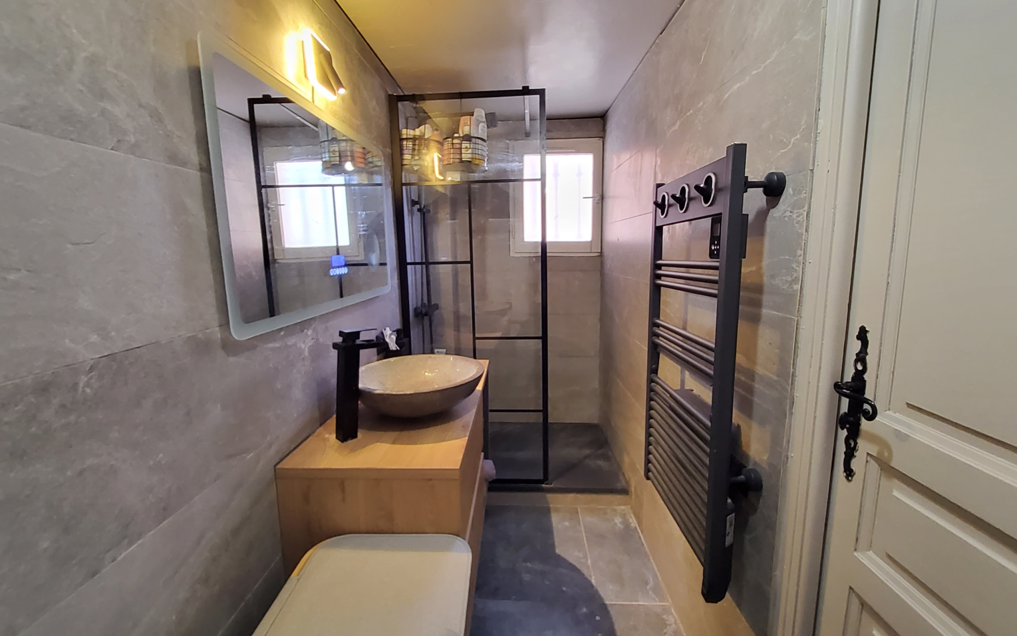 Au rez-de-chaussée, avec un accès indépendant, vous trouverez une piéce d'une surface habitable brute de 16m2 avec douche et wc, idéale pour un espace invité, un bureau ou une troisiéme chambre
