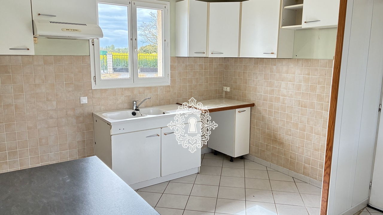 salon-séjour, cuisine ouverte, dégagement, 3 chambres, bureau, salle d'eau, wc, cellier,