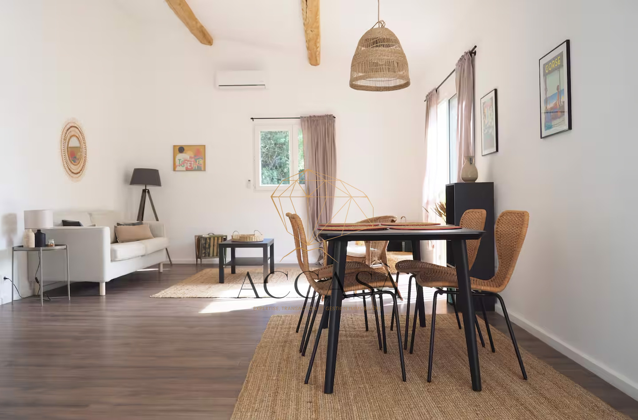 La maison propose de beaux volumes avec un espace de vie confortable d'environ 65 m2, une cuisine ouverte, trois chambres dont une avec salle d'eau privative, une salle de bain avec baignoire et douche à l'italienne ainsi qu'un WC indépendant. Les prestations sont récentes et adaptées à un usage résidentiel de qualité, avec climatisation dans toutes les pièces et de larges ouvertures sur l'extérieur.