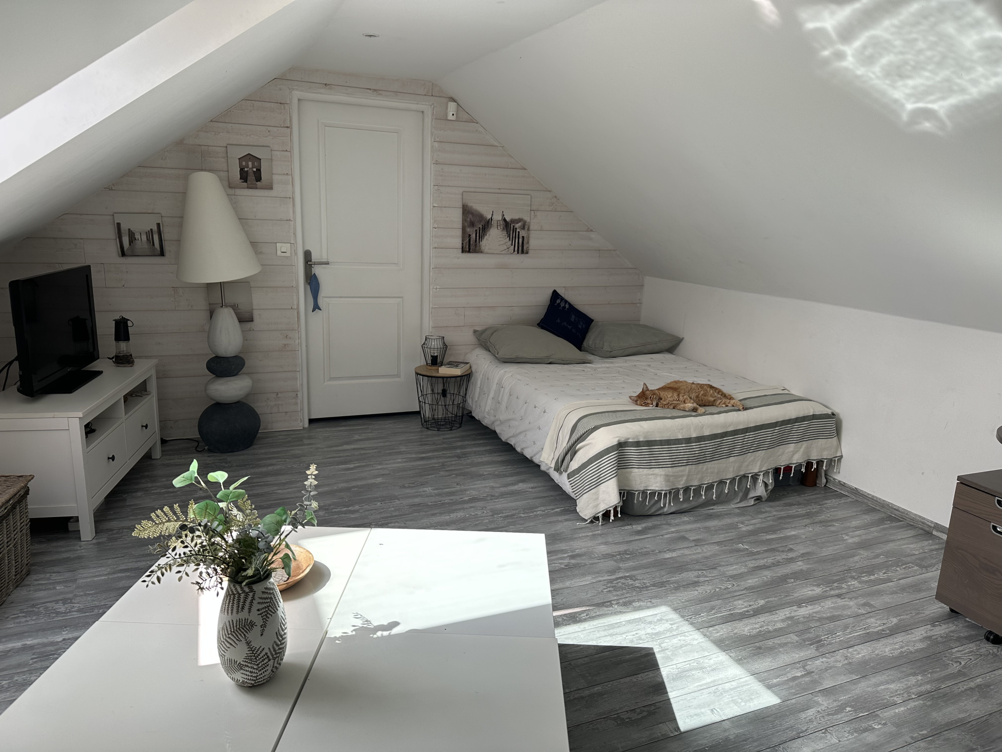 AU SECOND DEMI NIVEAU, UNE GRANDE CHAMBRE CLIMATISÉE AVEC DRESSING OFFRE UN ESPACE CONFORTABLE ET INDÉPENDANT.