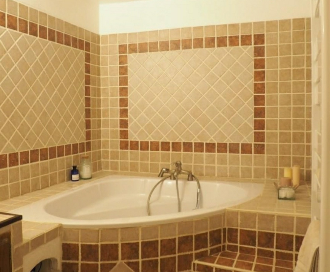 Salle de bain avec baignoire d'angle et WC