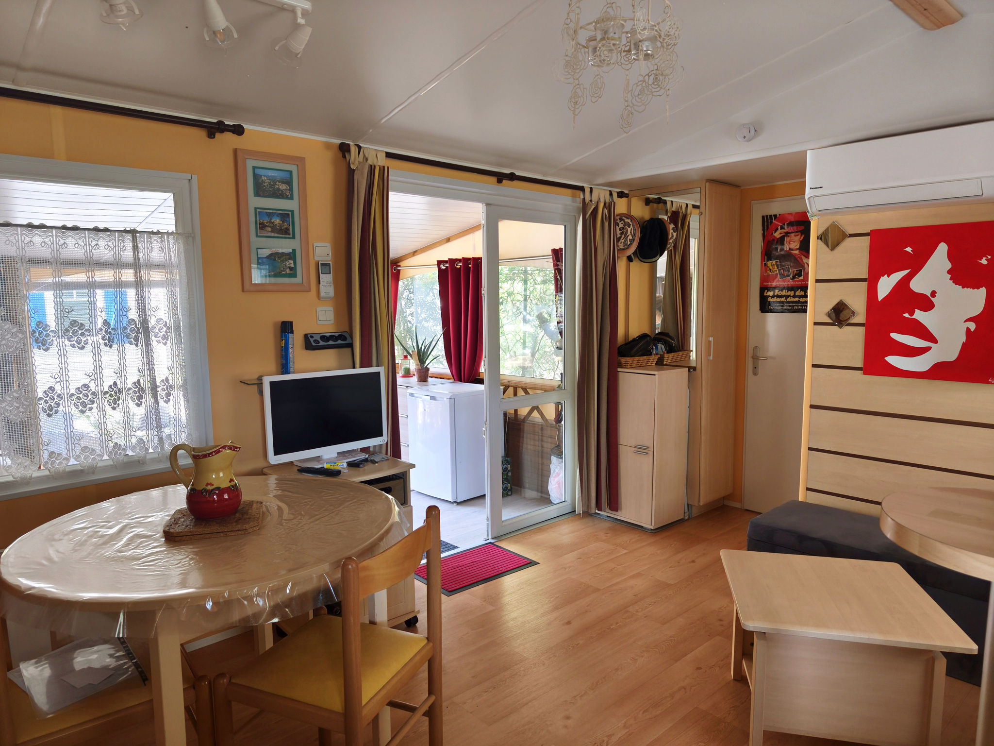 Description du mobil-home Ce mobil-home IRM, modèle Super Galaxi Confort est idéal pour profiter du soleil du Var dans un environnement calme et convivial. Parfaitement entretenu, vendu meublé, il est climatisé et se compose de : Un séjour convivial, une cuisine équipée, 2 chambres, une salle d'eau,un WC séparé. Une belle terrasse couverte et fermée , offrant un véritable espace de vie supplémentaire. Il est installé sur une parcelle arborée, prêt à être utilisé immédiatement.