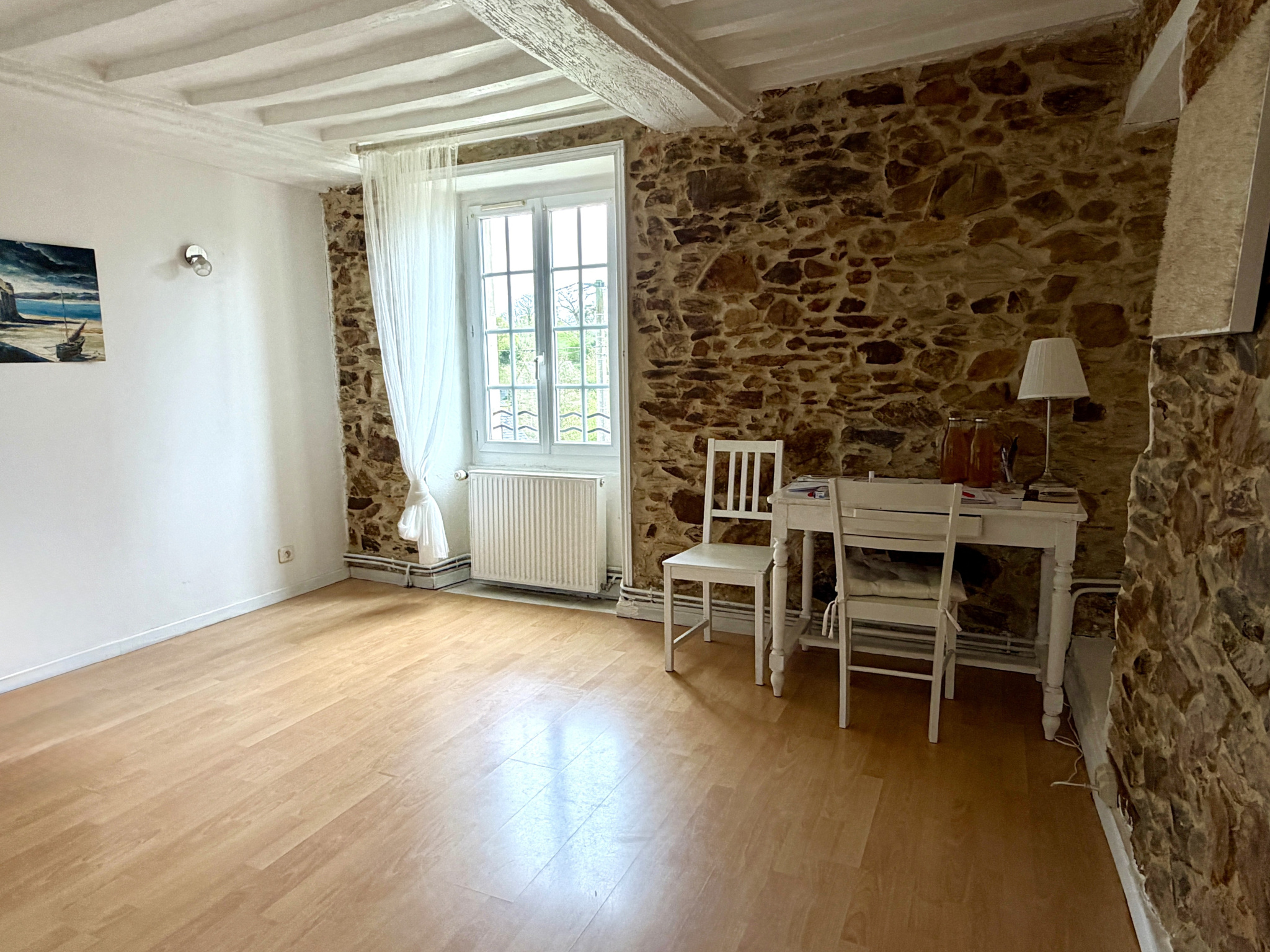 À l'étage, un palier dessert deux chambres avec la possibilité d'en créer une troisième, ainsi qu'une salle d'eau.