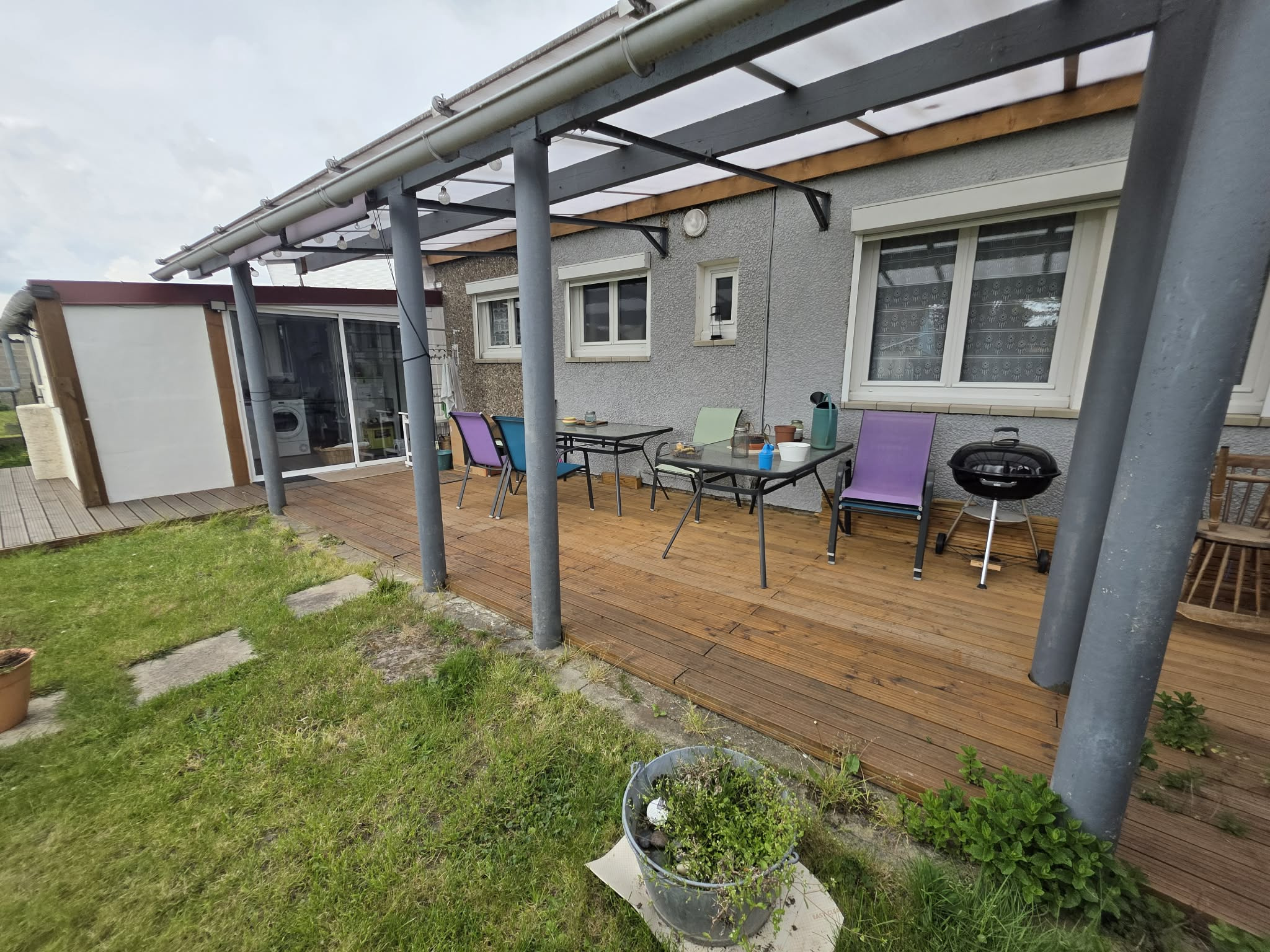 Je vous propose en exclusivité cette maison d'habitation d'environ 68 m2, implantée sur une parcelle de 464 m2 entièrement close, offrant un cadre de vie agréable avec jardin, garage 1 voiture et terrasse couverte de type pergola, idéale pour profiter des extérieurs en toute saison. L'avant de la propriété est aménagé en enrobé permettant le stationnement de plusieurs véhicules et l'ensemble est sécurisé par un portail et un portillon.