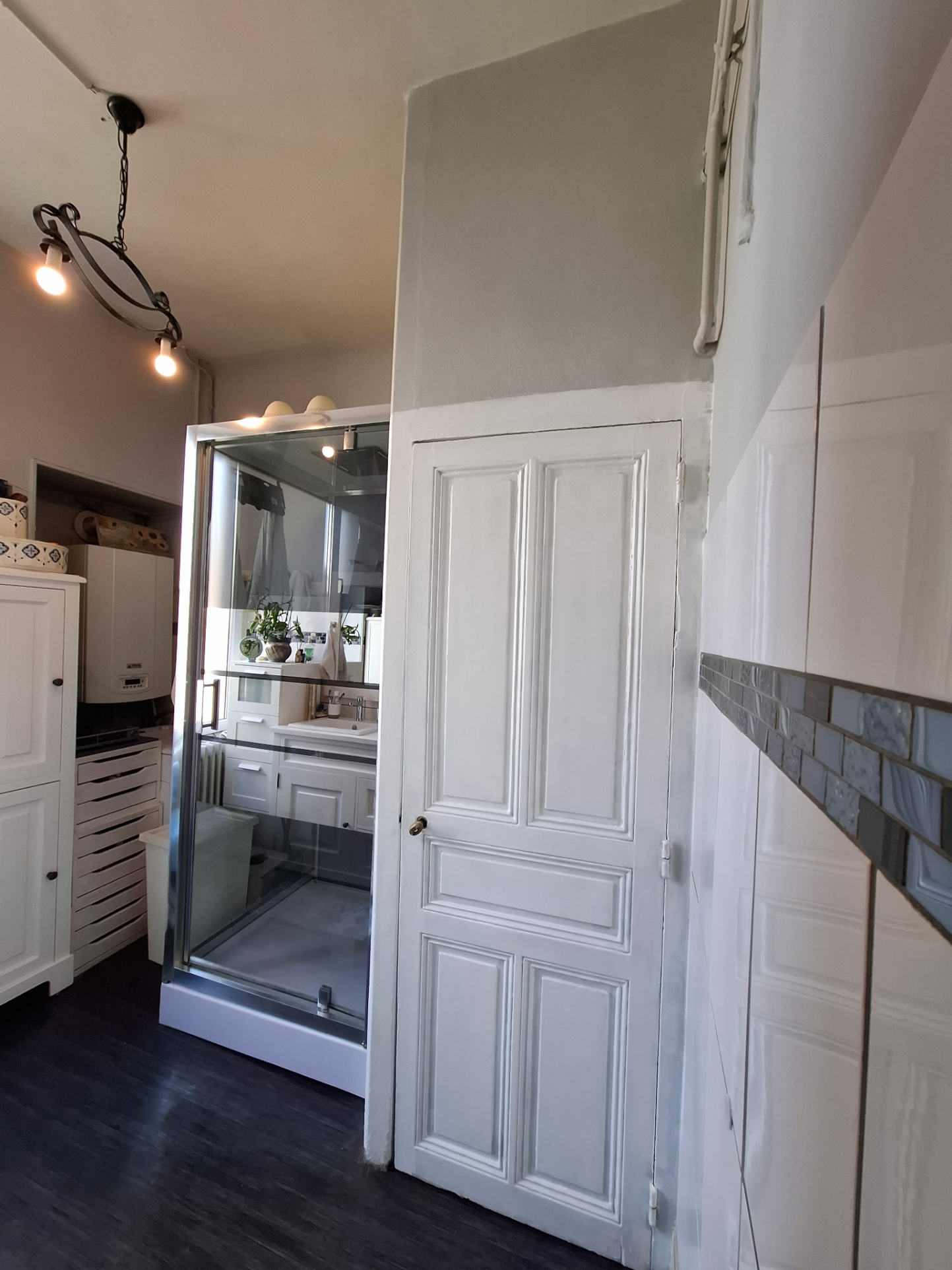 le charme de l'ancien : Parquet d'origine en chêne, hauteur sous plafond et moulures.