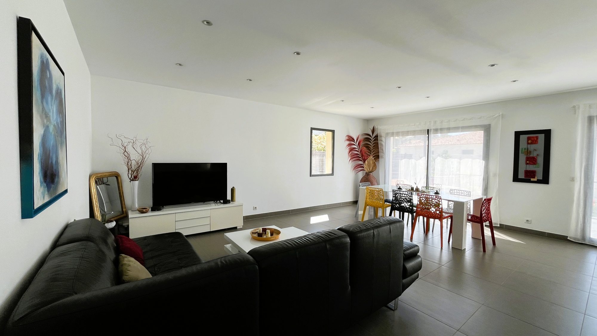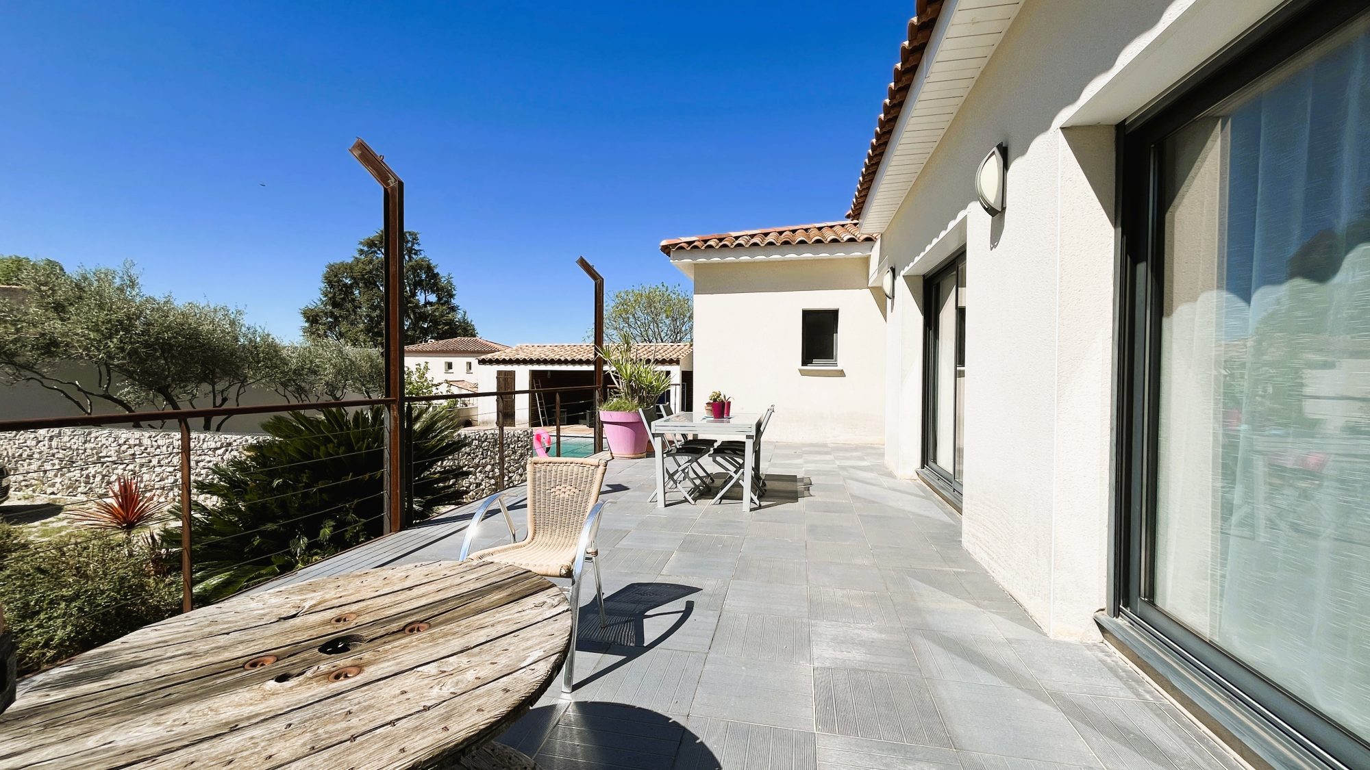 A VENDRE - LE POUGET - Dans un environnement paisible aux portes de Gignac et au coeur d'un cadre naturel privilégié, laissez-vous séduire par cette superbe villa moderne de plain-pied construite en 2012, offrant 130 m² habitables sur une parcelle arborée de 918 m² avec piscine au sel de 6x6 m, pool house, terrain de pétanque et de nombreuses possibilités de stationnement. Parfaitement entretenue et pensée pour le confort au quotidien, cette villa bénéficie d'une vaste et lumineuse pièce de vie de plus de 50 m² avec cuisine américaine contemporaine entièrement équipée, en triple exposition, et avec cellier/buanderie et un accès direct à une agréable terrasse de 38 m², idéale pour profiter des beaux jours. L'espace nuit se compose de quatre chambres spacieuses de plus de 12 m² chacune, dont une coquette suite parentale disposant de sa salle d'eau et d'un dressing. La maison dispose d'une seconde salle d'eau avec WC, de toilettes indépendantes et d'un hall d'entrée accueillant avec placard. Un grand garage attenant de 23 m² avec mezzanine et belle hauteur sous plafond de 5 mètres complète ce bien. Les prestations sont de qualité avec plancher chauffant et rafraîchissant hydraulique, aspiration centralisée, menuiseries en aluminium, fenêtres oscillo-battantes, nombreux rangements, buanderie avec accès extérieur, porte de garage motorisée, toiture quatre pans avec débords, vide sanitaire et fibre optique. À proximité des transports, du centre du village et des établissements scolaires de Gignac, cette villa est une opportunité rare proposée au prix de 420 000 ? frais d'agence inclus, honoraires à la charge du vendeur. Faites vite!!! Contact : Gaëlle Cohen 06 25 59 51 08.