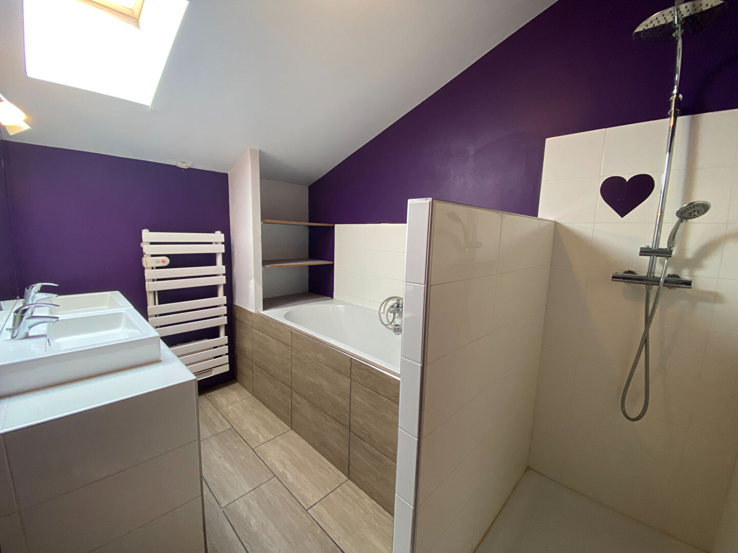 Côté nuit, vous trouverez une salle de bains avec douche, deux chambres de 10 et 11 m², dont une suite parentale avec sa salle d'eau.
