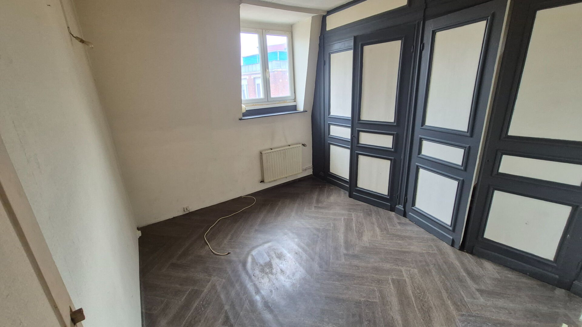 Dans une rue en sens unique, maison flamande une mitoyenneté offrant un hall d'entrée, un séjour et une cuisine aménagée au rez-de-chaussée.