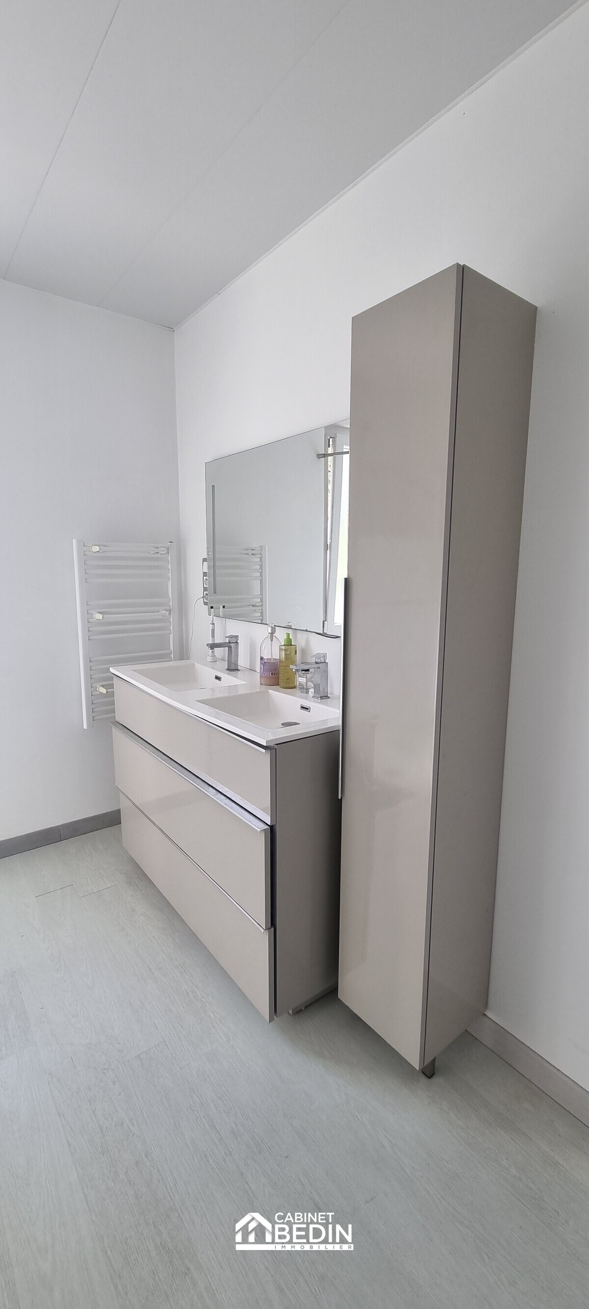 à l?étage une belle pièce de vie lumineuse salon-séjour, une cuisine aménagée, trois chambres, couloir, salle d'eau avec WC.