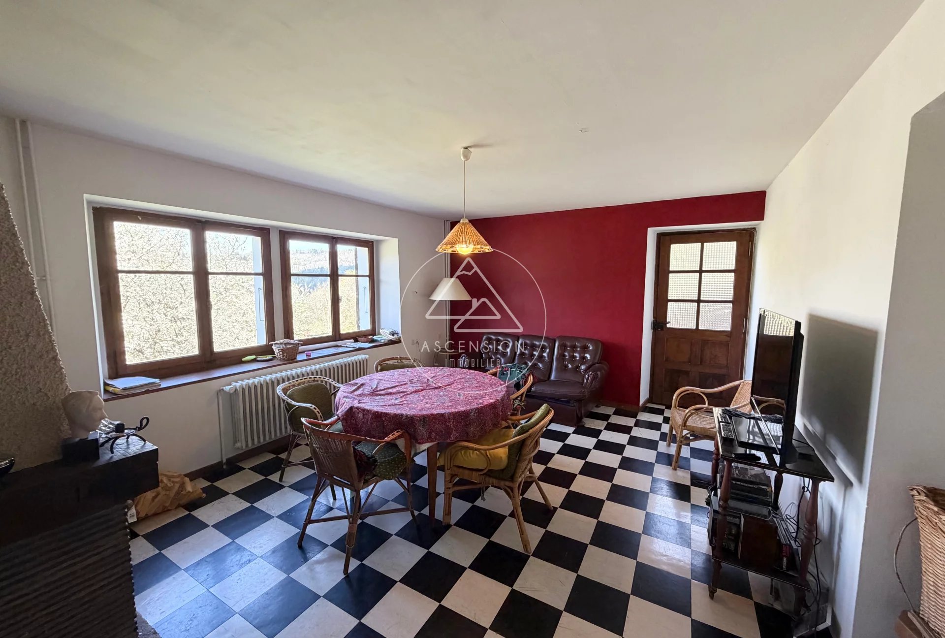 Située au hameau du Bommely, sur le village de La Vernaz, cette maison d'environ 110 m² habitables (170 m² utiles) est implantée sur un terrain de 1 022 m². Un garage et une grange font partie de l’ensemble.