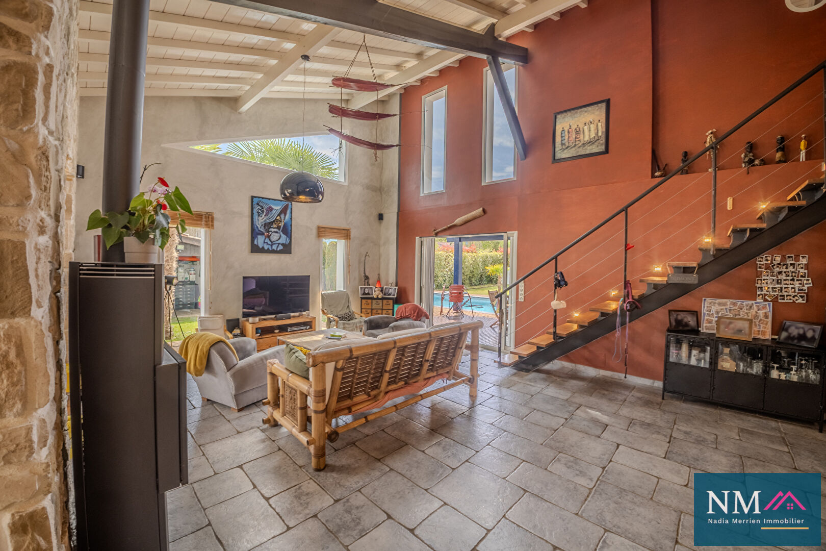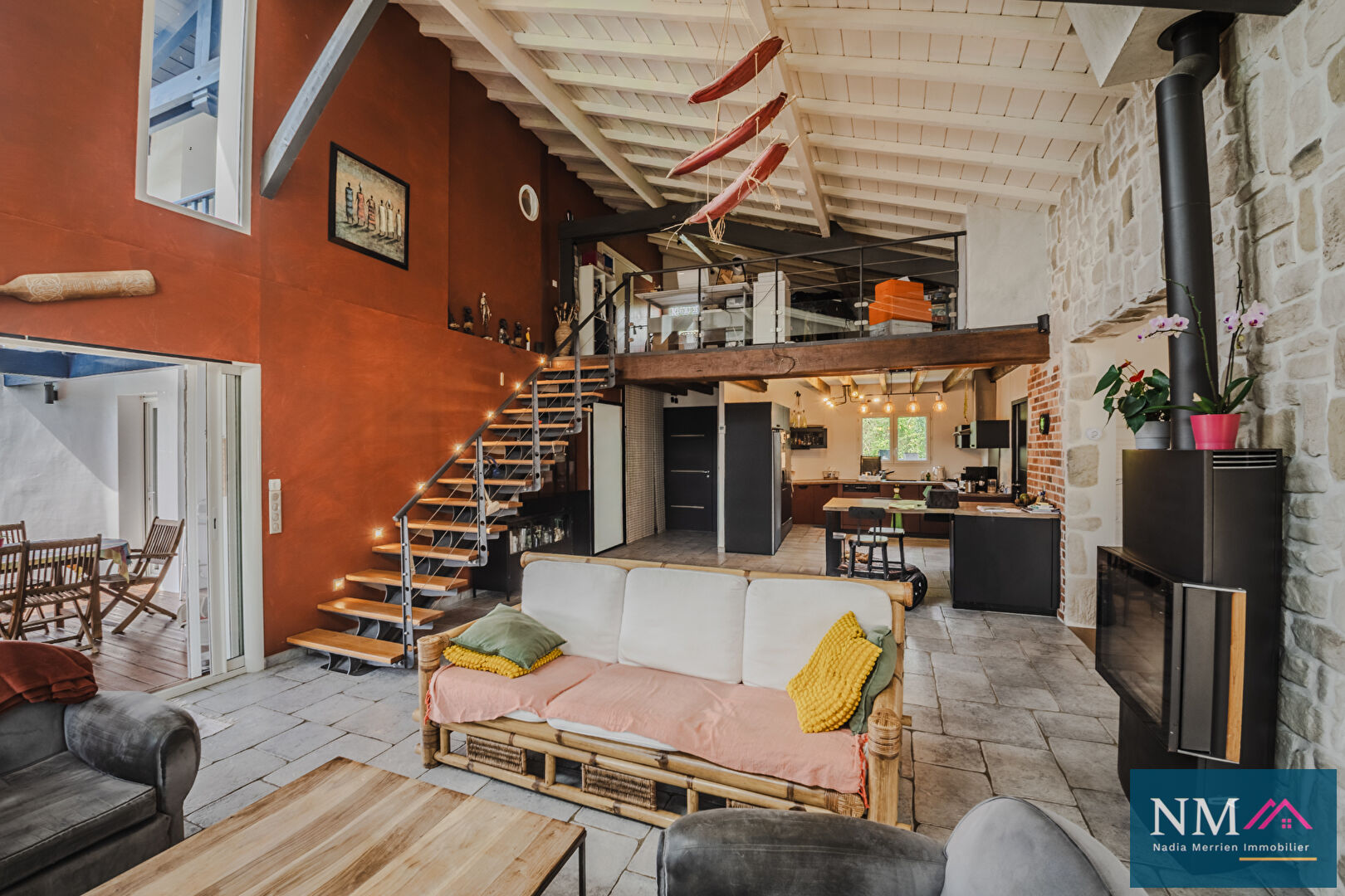 Développant environ 200 m² habitables, elle séduit par ses beaux volumes et sa luminosité omniprésente. Le rez-de-chaussée s'organise autour d'une vaste pièce de vie de 62 m² avec séjour, salon et cuisine, complétée par une salle à manger de 21 m². Les nombreuses ouvertures et la belle hauteur sous plafond d'environ 5 mètres renforcent la sensation d'espace et de clarté.