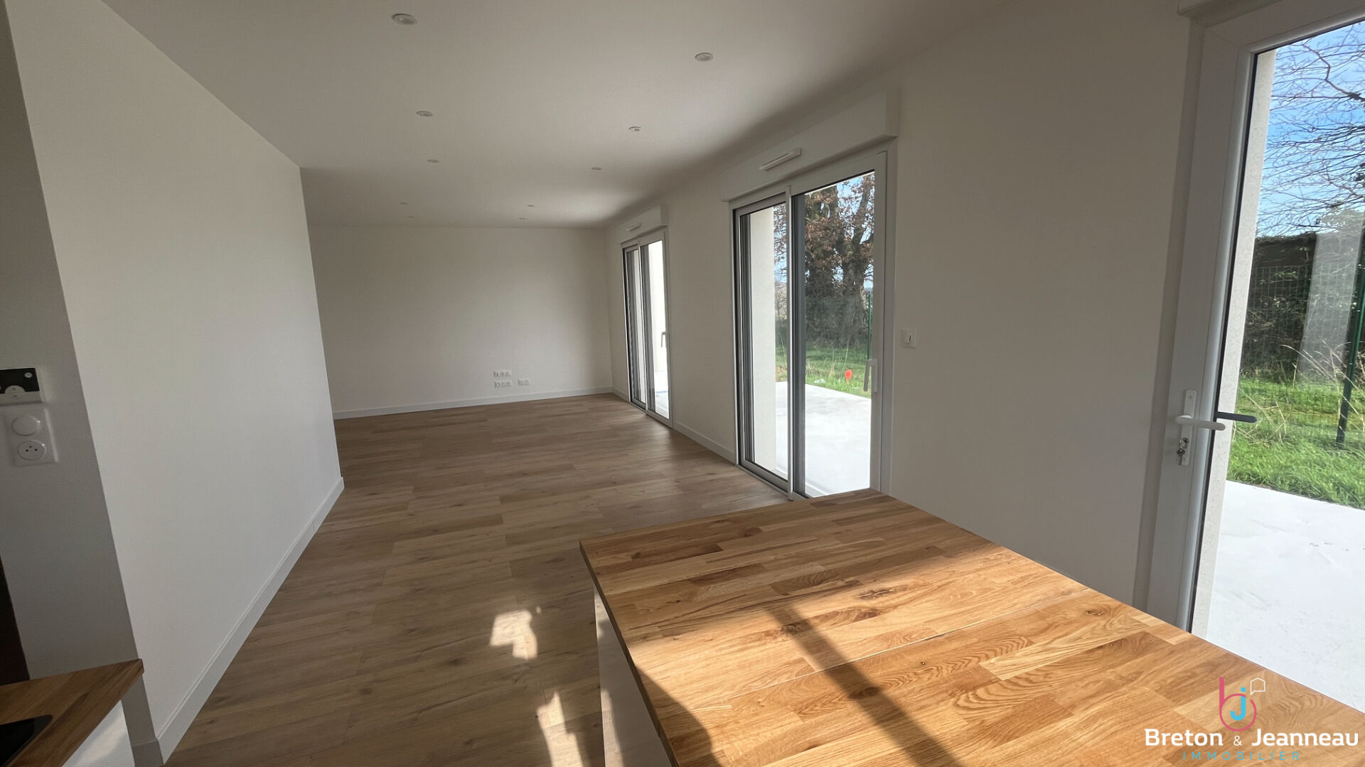 EN EXCLUSIVITE à CHANGÉ - Maison récente de 109 m² comprenant au rez-de-chaussée : entrée, cuisine aménagée équipée ouverte sur salon séjour avec accès terrasse, suite parentale (chambre, dressing, salle d'eau), WC.