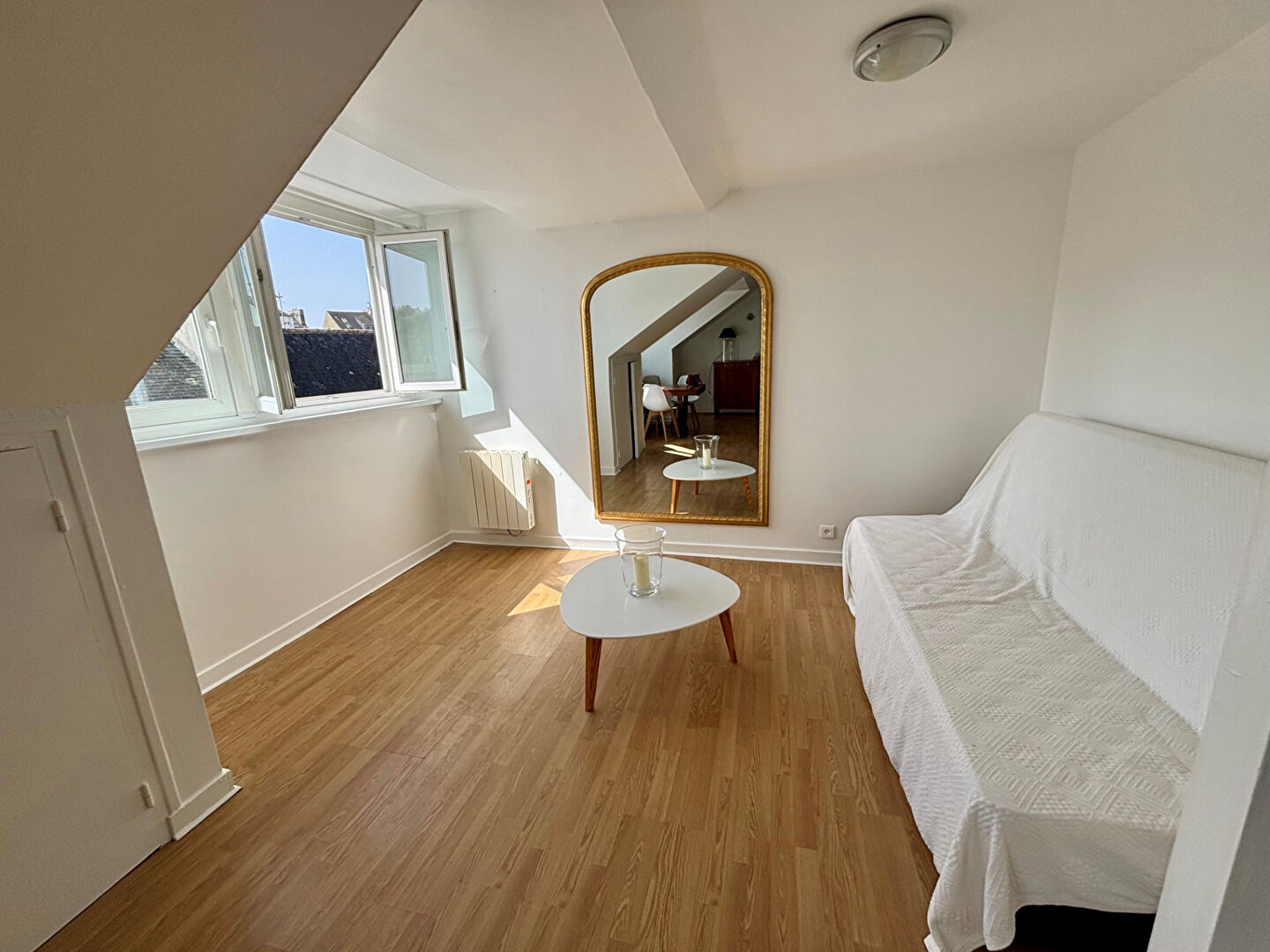 NOUVELLE EXCLUSIVITÉ, Quimper centre historique, pour les amoureux de l'ancien, dans un petit immeuble de caractère, magnifique appartement T2 offrant un entrée avec placards, séjour salon avec cuisine équipée, chambre avec sdb, wc, coin nuit supplémentaire sous mansarde à l'étage. Vue sur les toits Quimpérois. Un bûcher en extérieur pour stocker vos affaires. Une pépite dans l'un des emplacements stratégiques du centre ville !