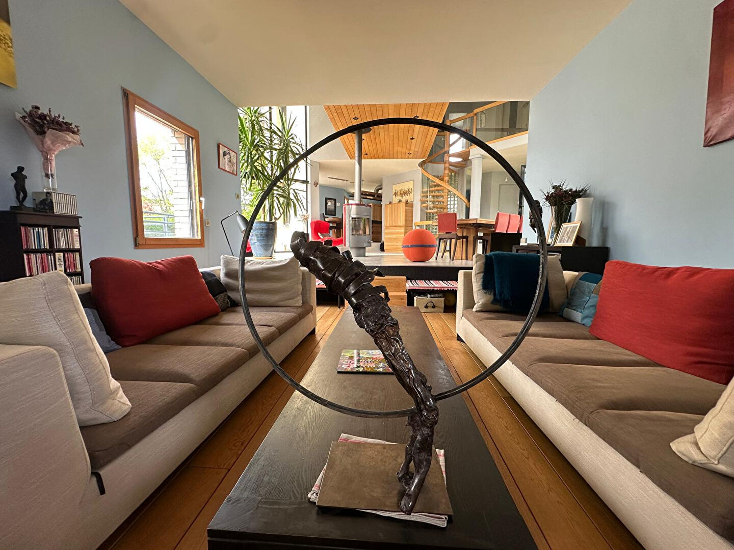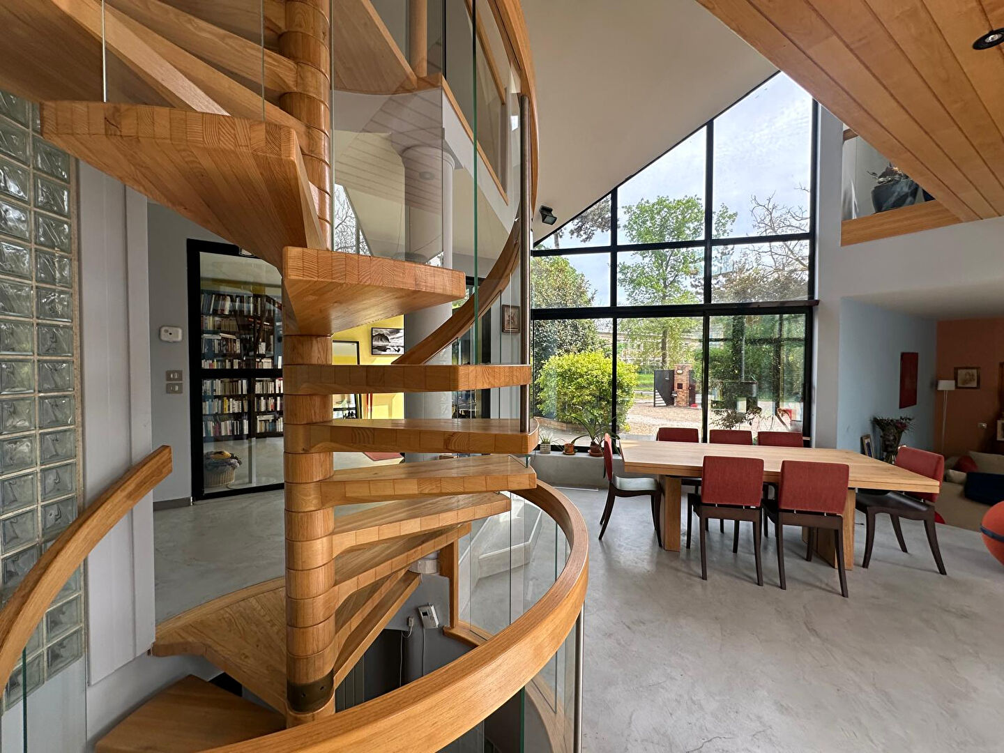 Dès l'entrée, le regard est immédiatement attiré par un séjour cathédrale baigné de lumière.