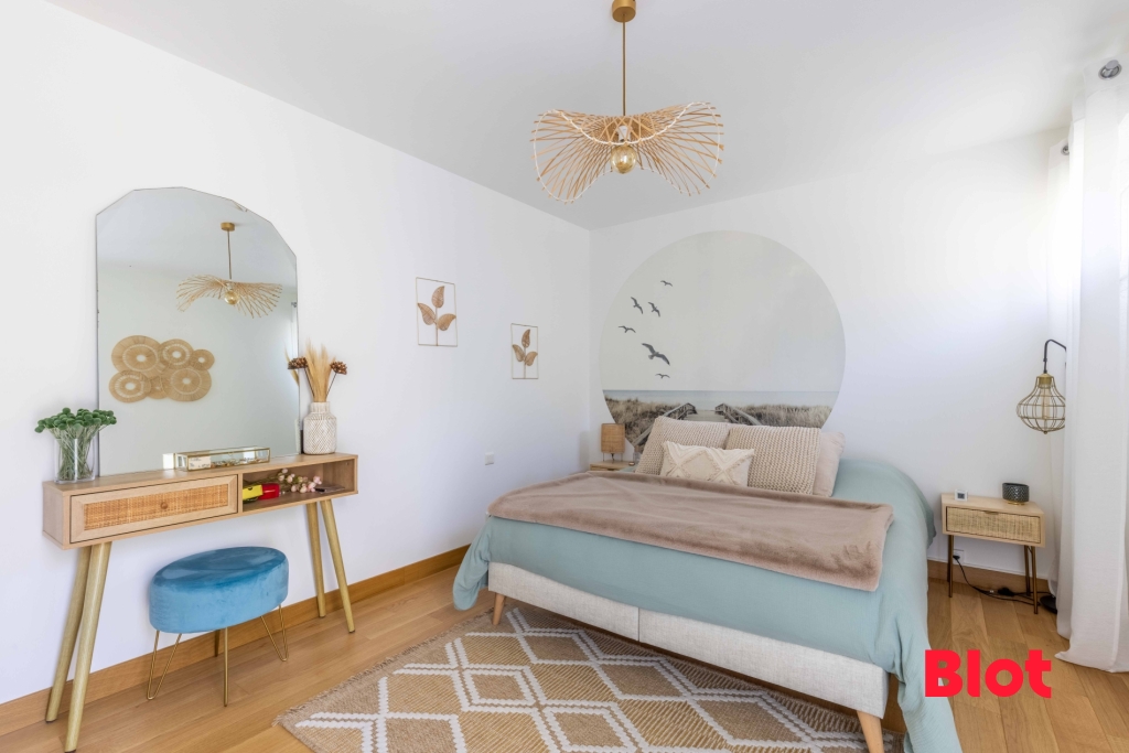 À l'étage, l'espace nuit se compose de 4 chambres, d'une salle de bains et d'un WC, offrant un confort idéal pour une famille.