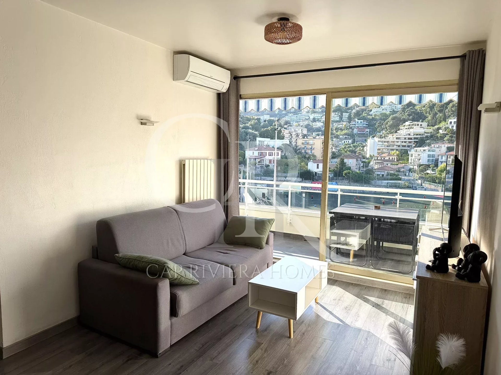 Très beau studio de 30m2 à Roquebrune Cap Martin au 8ème et dernier étage, climatisé, comprenant une salle de bain, un toilette indépendant, un séjour spacieux, une cuisine équipée et une terrasse agréable avec vue dégagée, calme et sans vis-à-vis