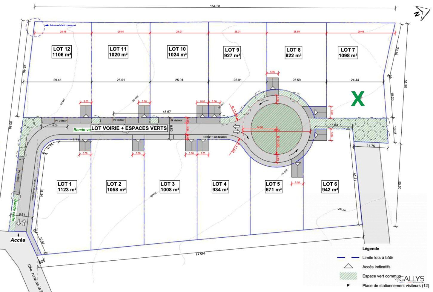 o 12 terrains à bâtir de surfaces (entre 671 et 1123 M2)