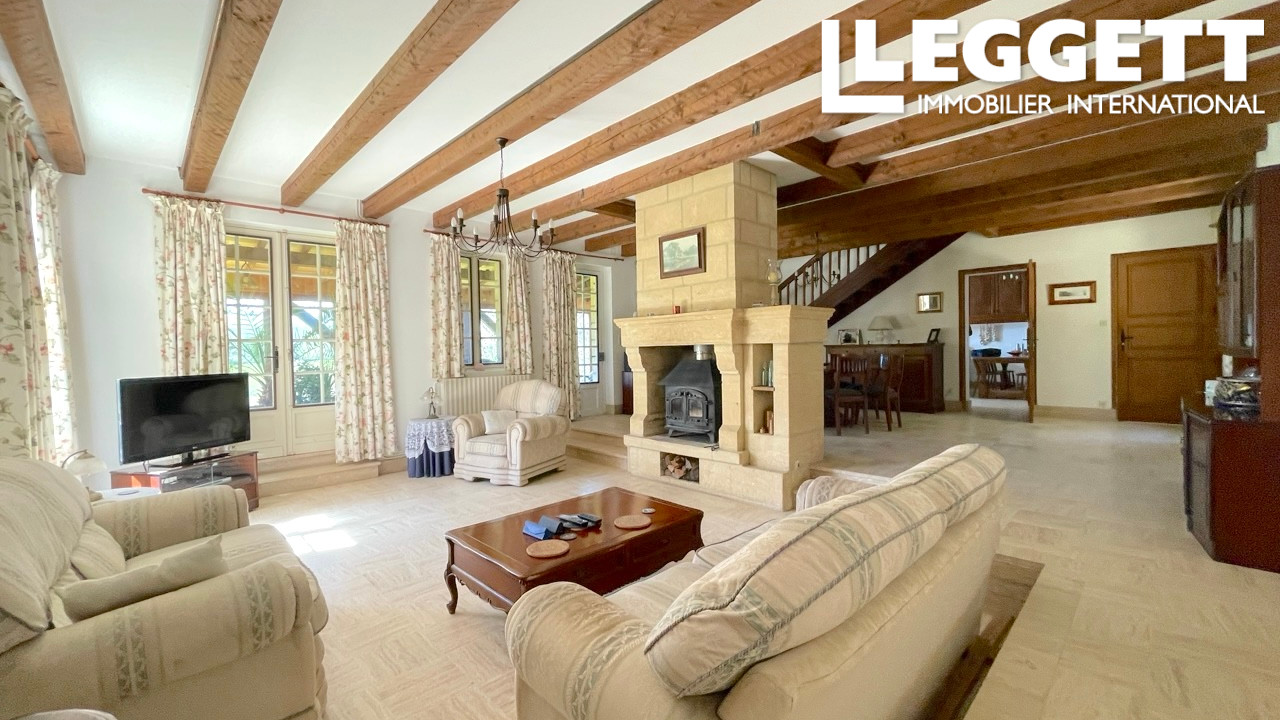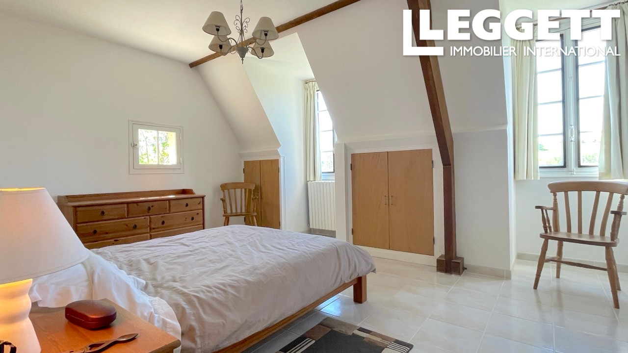 La maison principale offre plus de 330 m² habitables avec de beaux volumes : entrée, cuisine, salle à manger / salon avec cheminée, véranda, bureau, bibliothèque, buanderie, ainsi que 5 chambres dont une superbe suite de plus de 65 m².