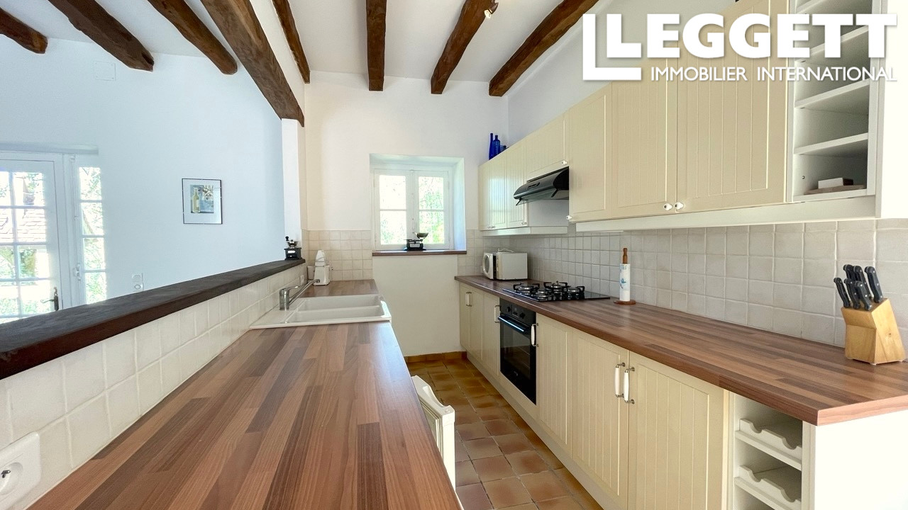 Une maison d'amis aménagée dans une ancienne grange complète l'ensemble avec une grande pièce de vie, une chambre et une salle d'eau.